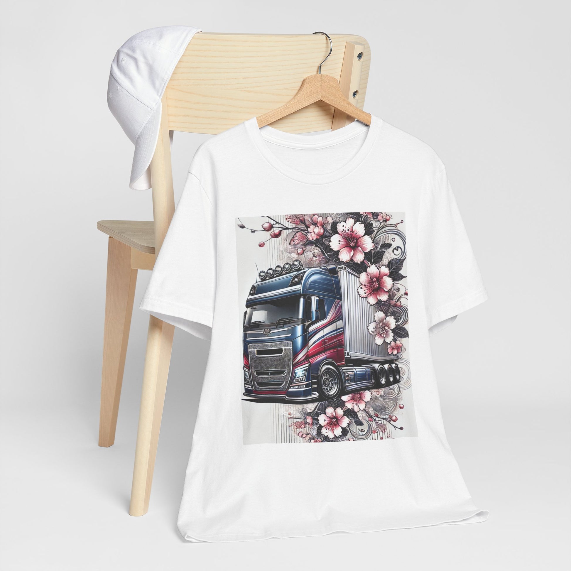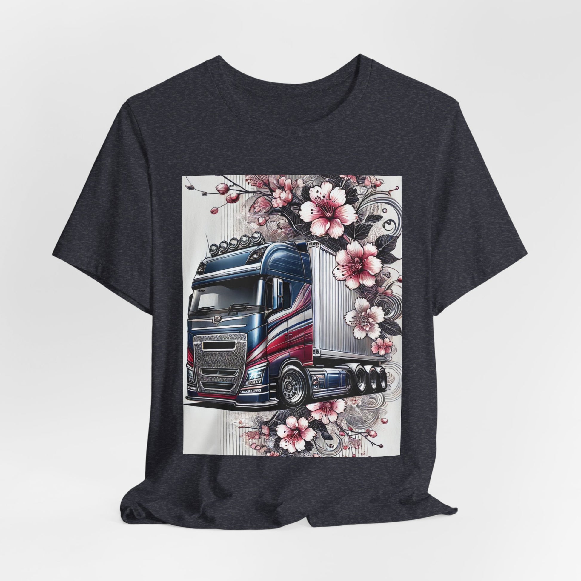 Cherry Blossom Convoy T-Shirt | Japanese Sakura x Modern Truck Art | Unique Graphic Tee for Drivers & Streetwear Lovers 001