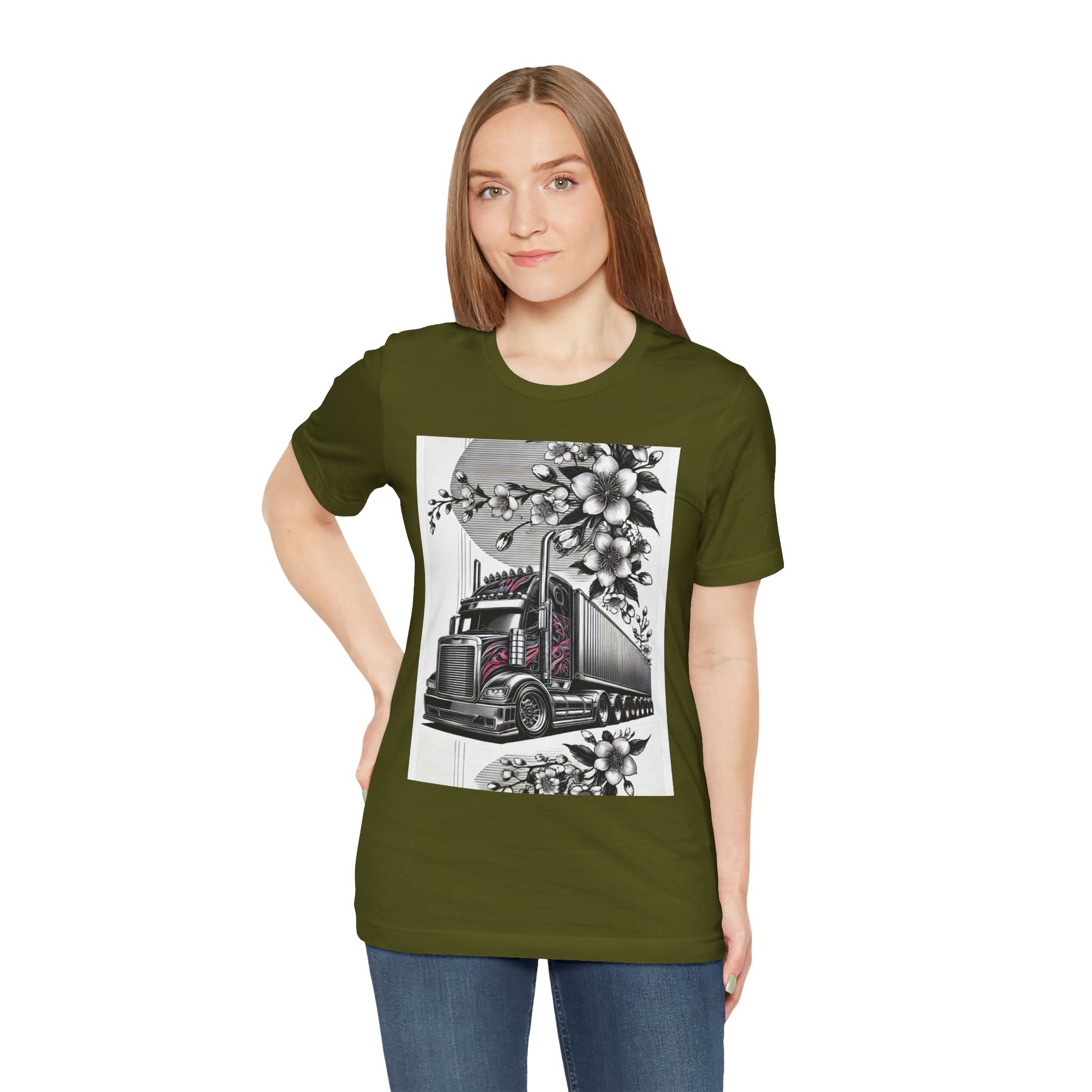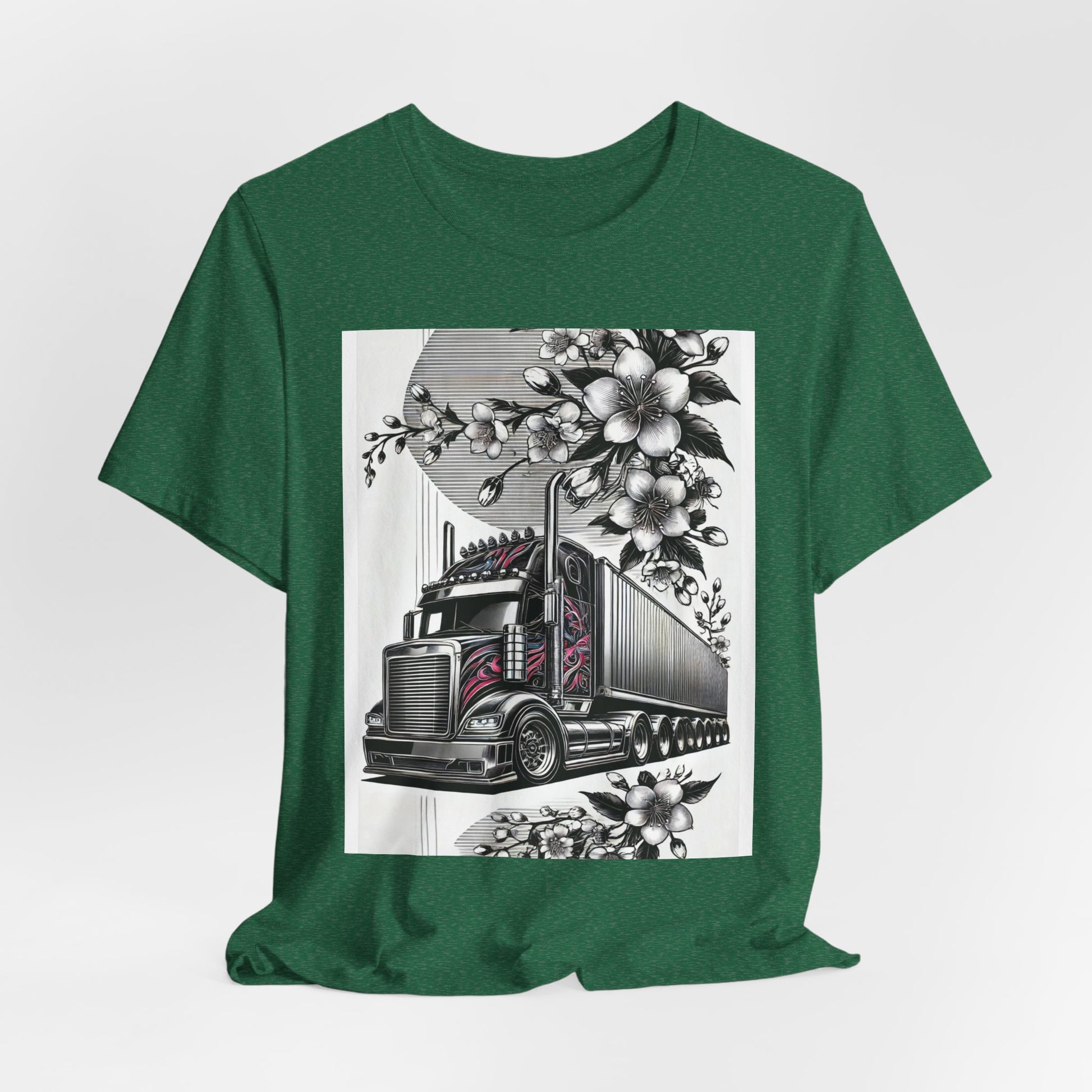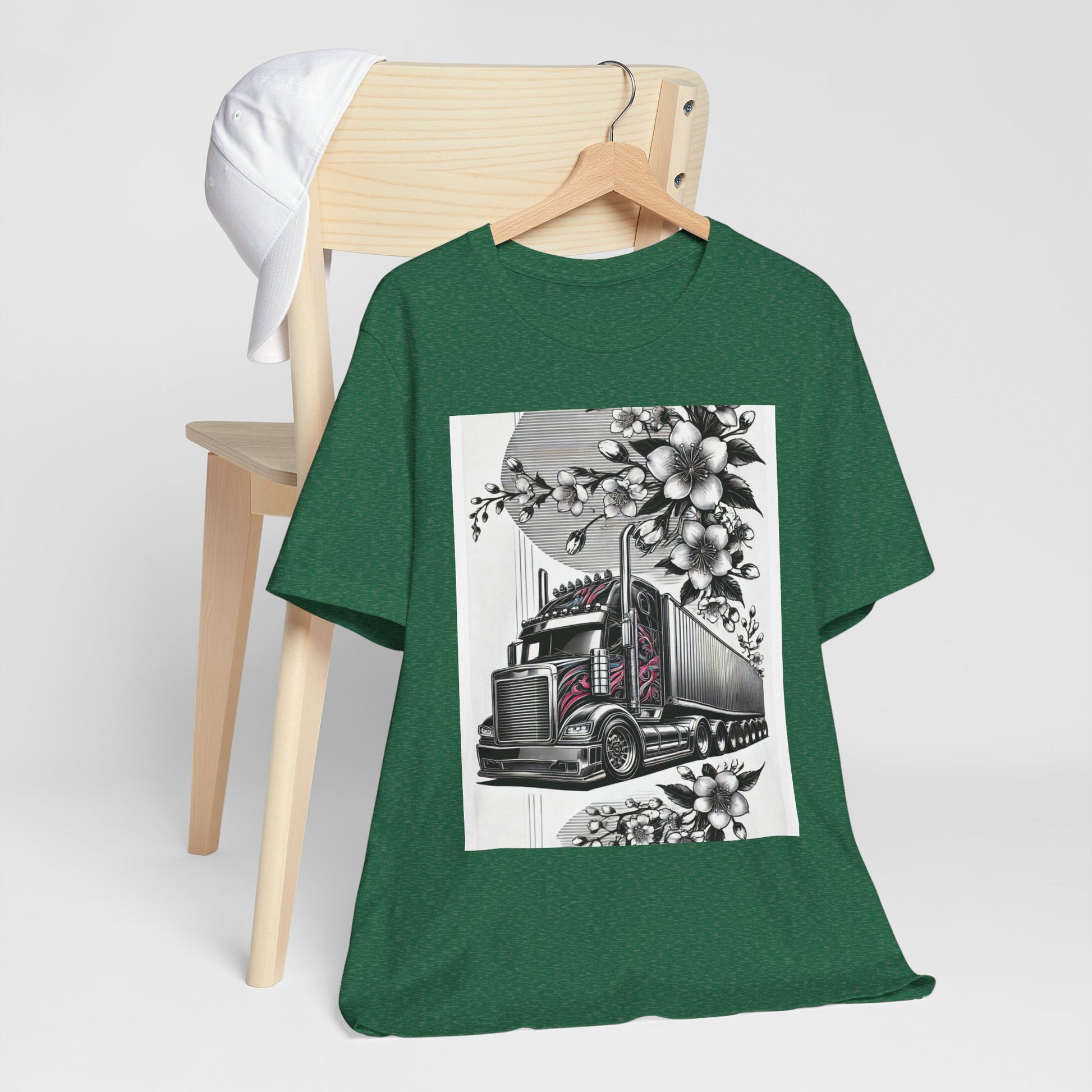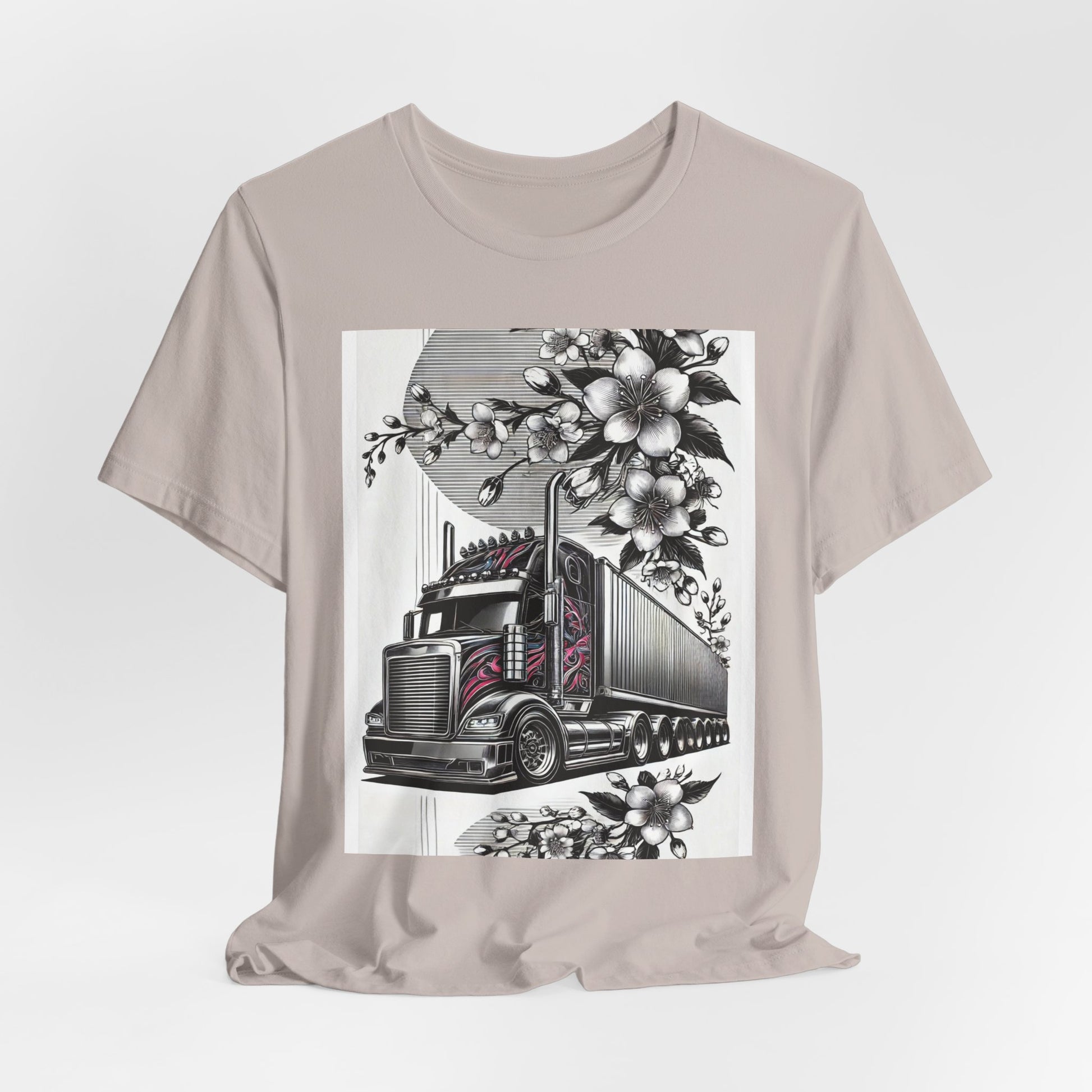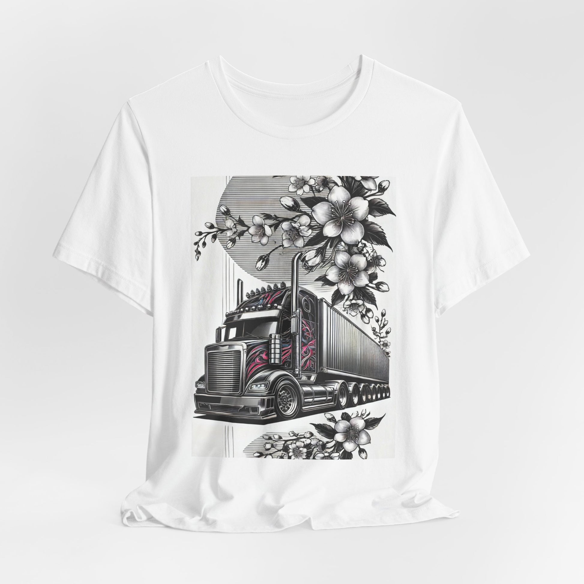 Cherry Blossom Convoy T-Shirt | Japanese Sakura x Modern Truck Art | Unique Graphic Tee for Drivers & Streetwear Lovers No.002