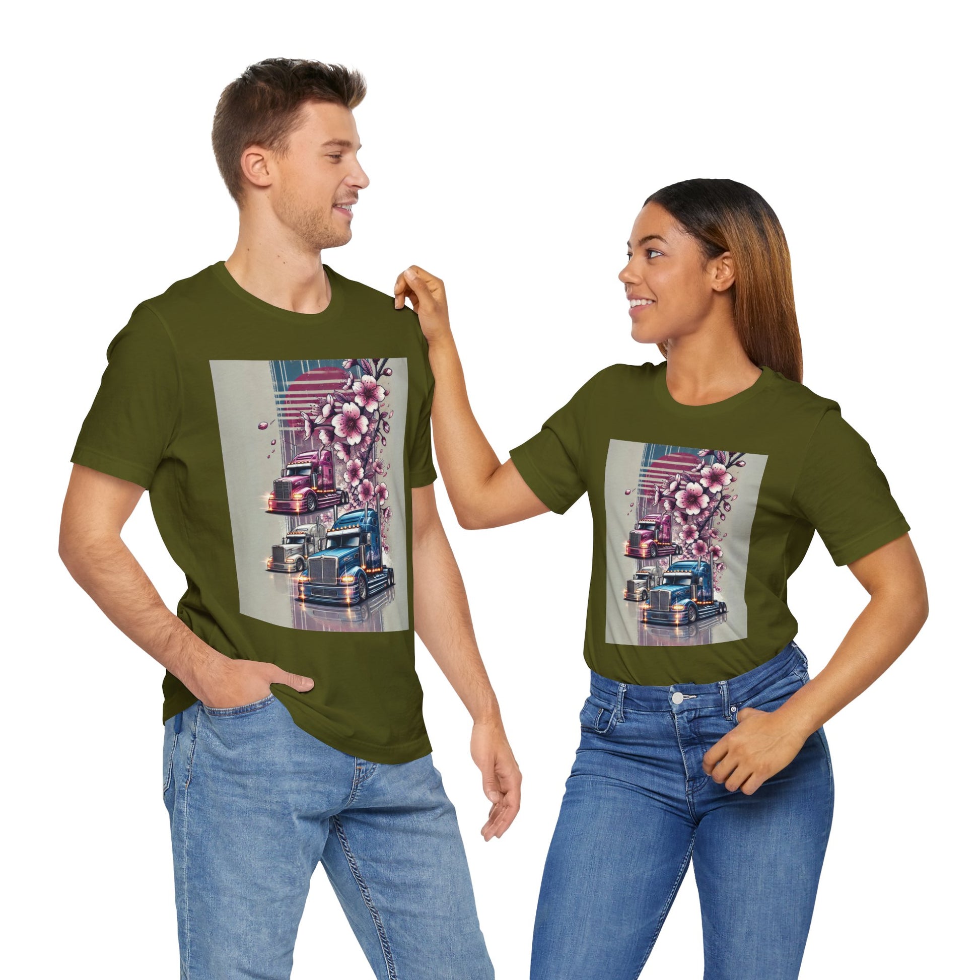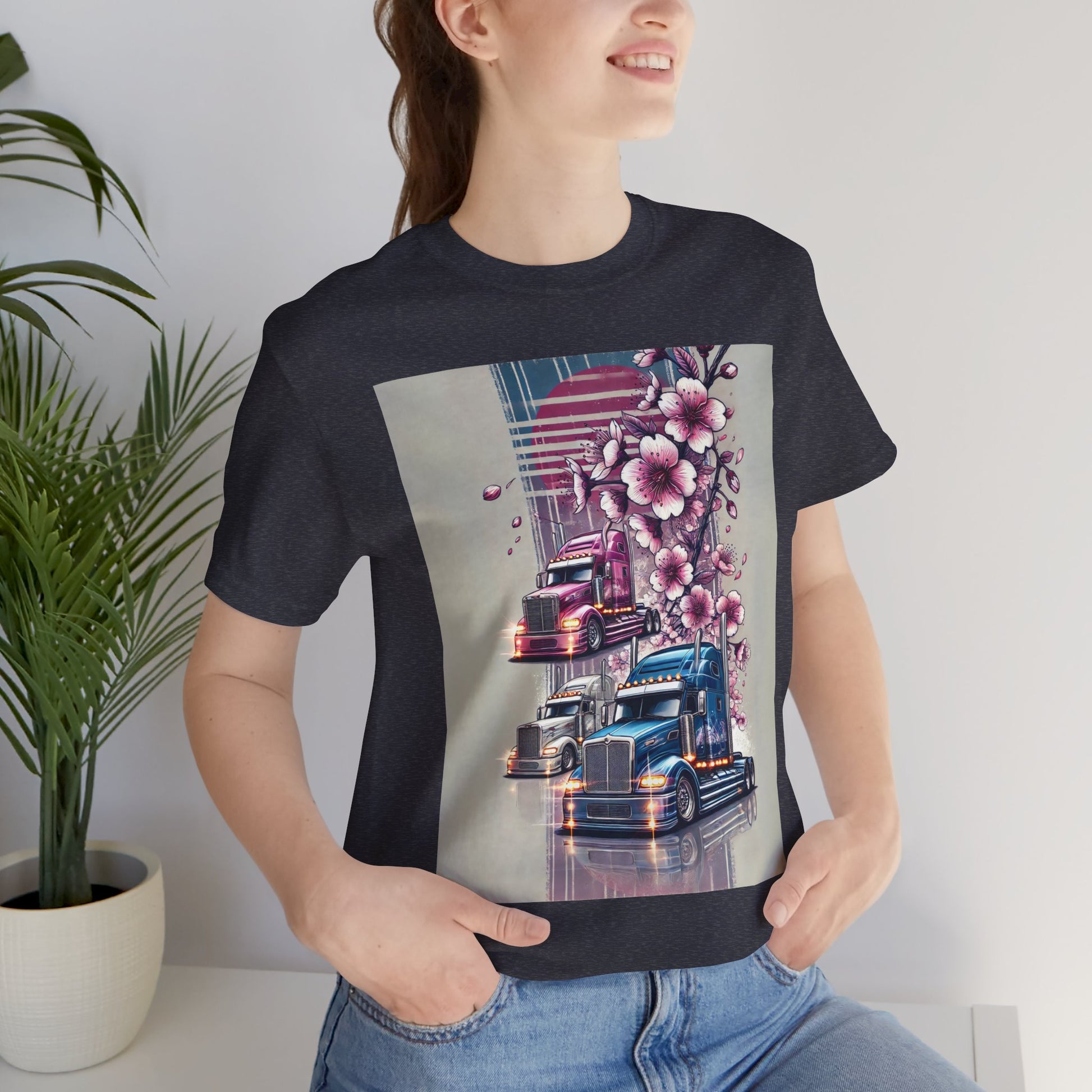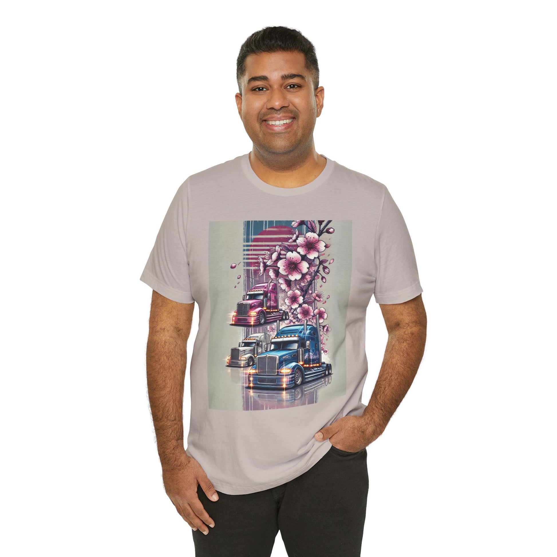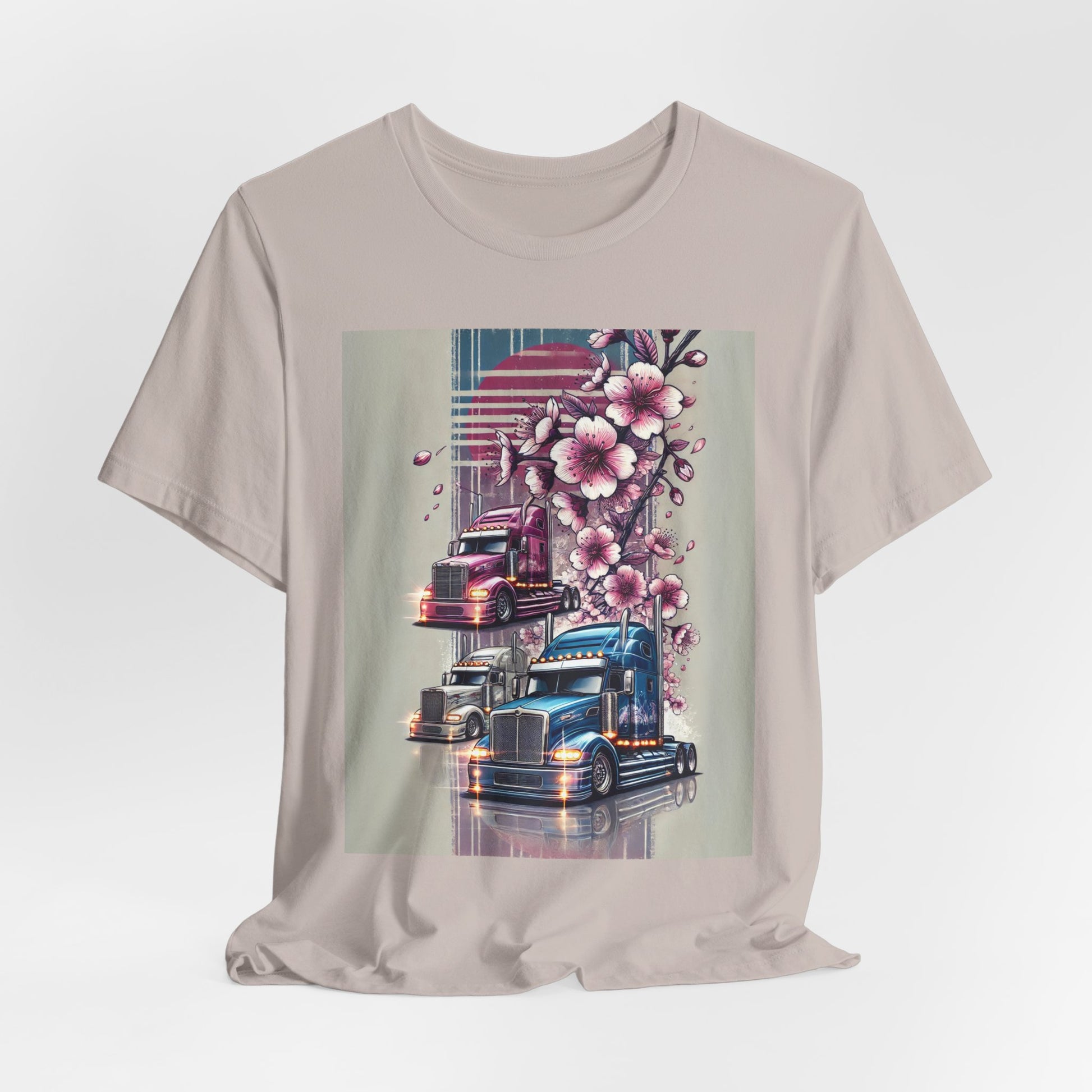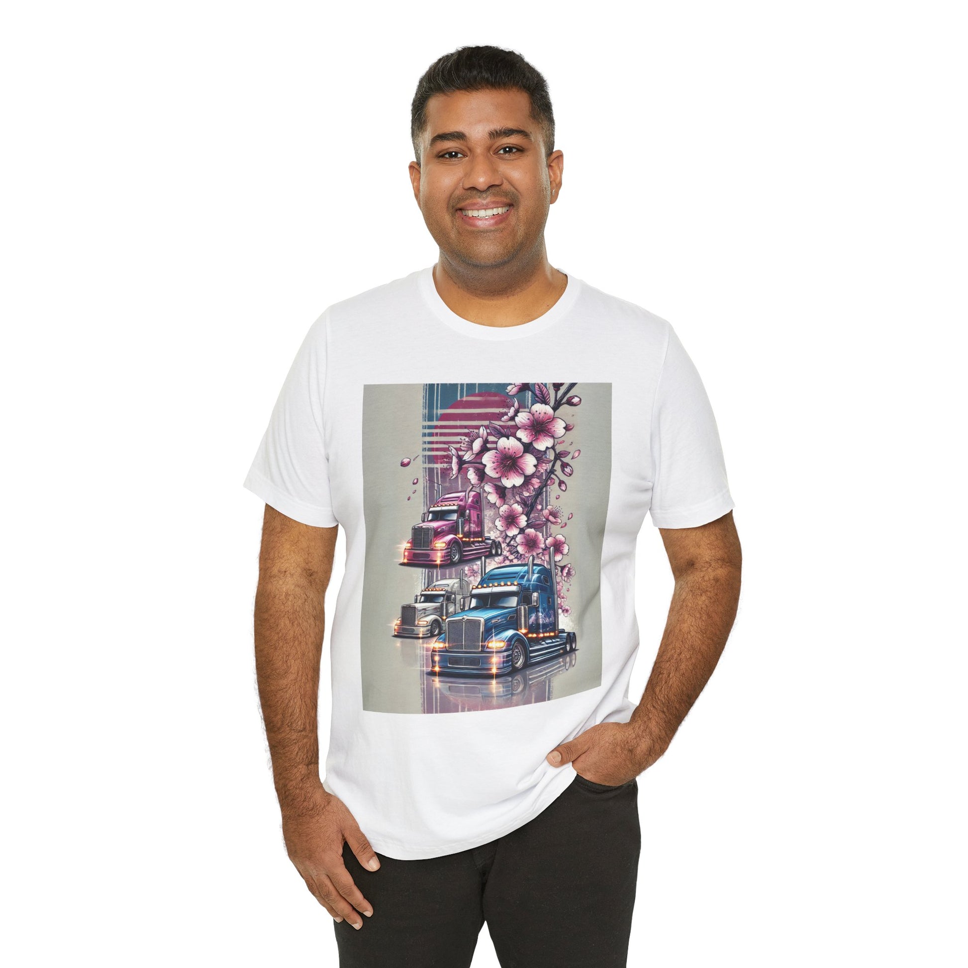 Cherry Blossom Convoy T-Shirt | Japanese Sakura x Modern Truck Art | Unique Graphic Tee for Drivers & Streetwear Lovers No.004