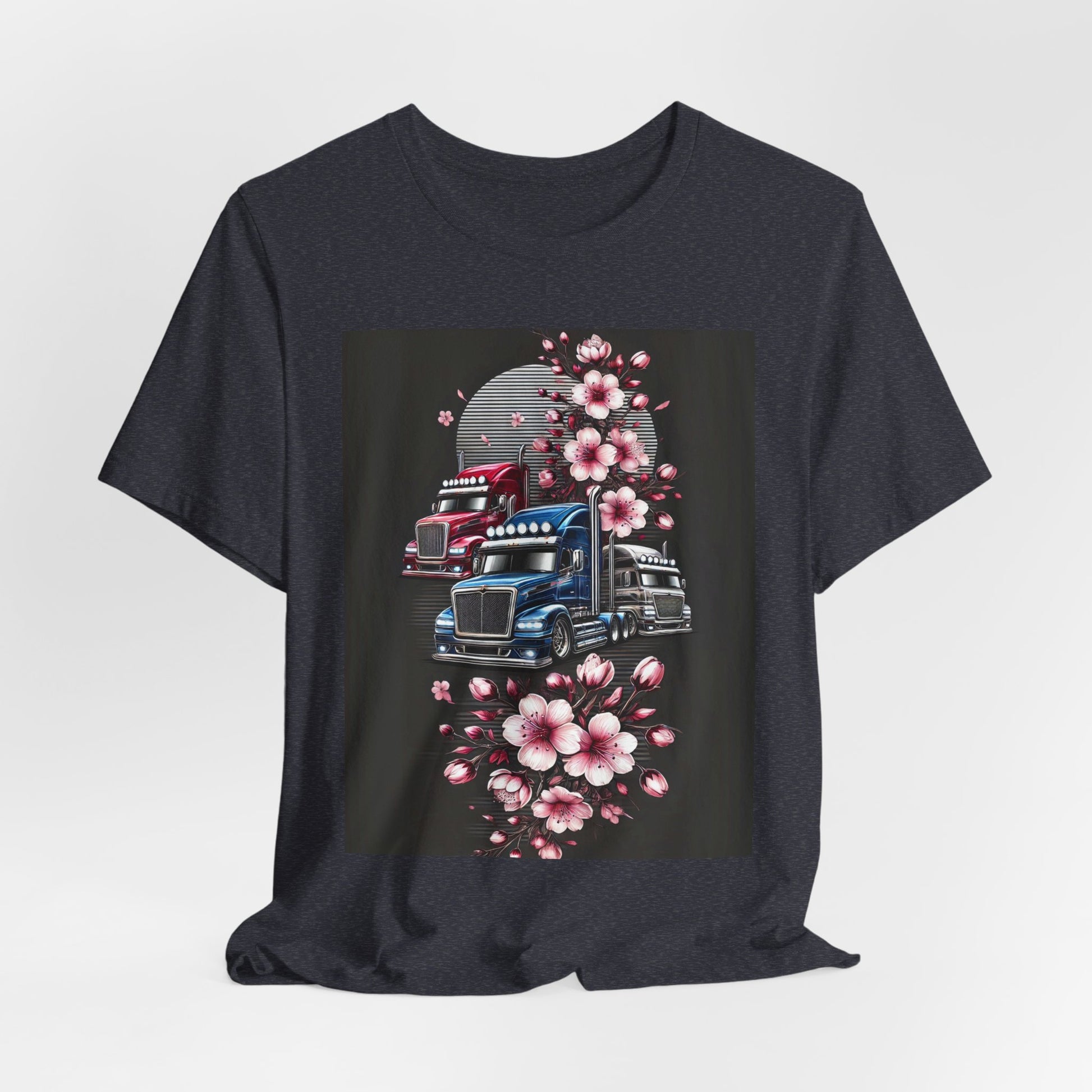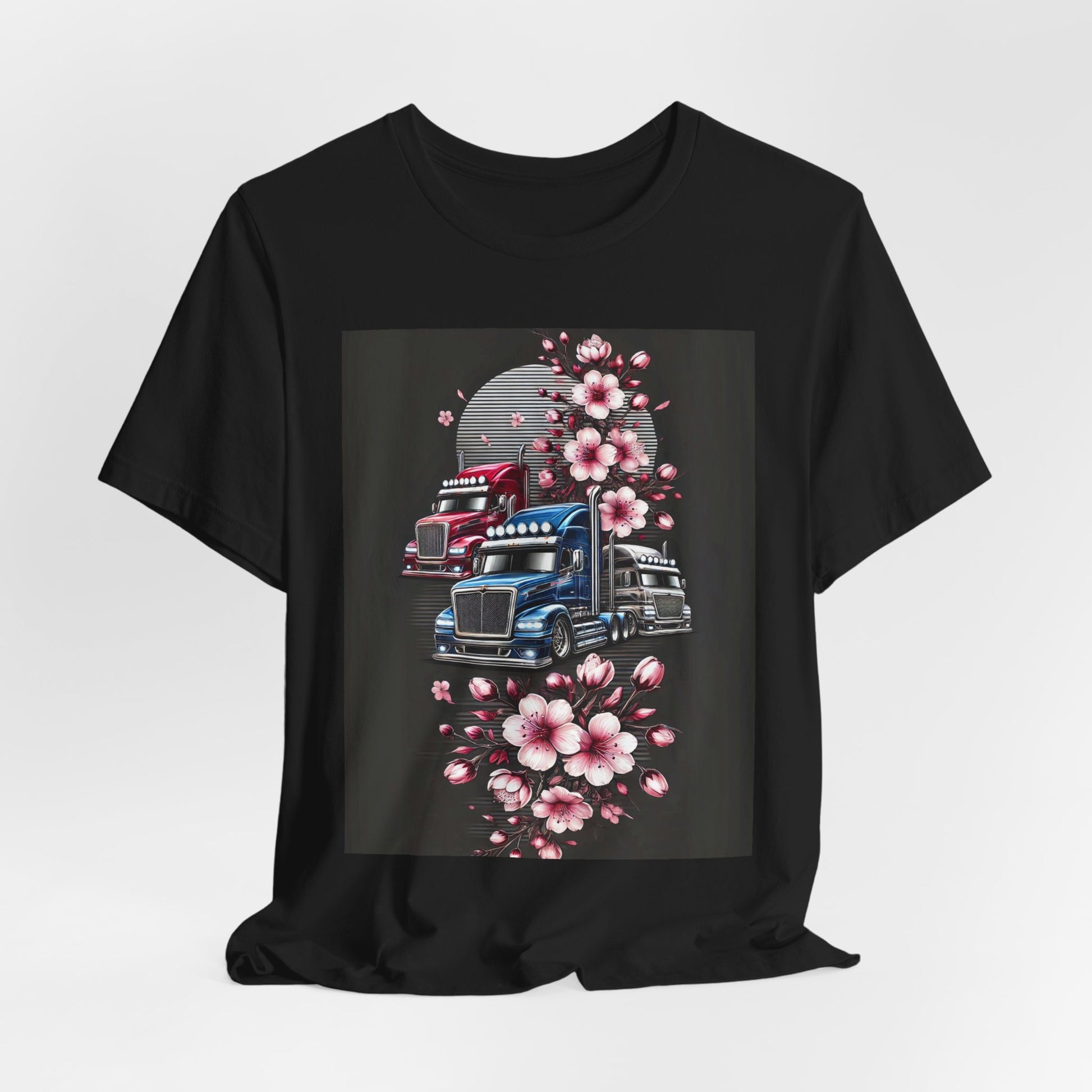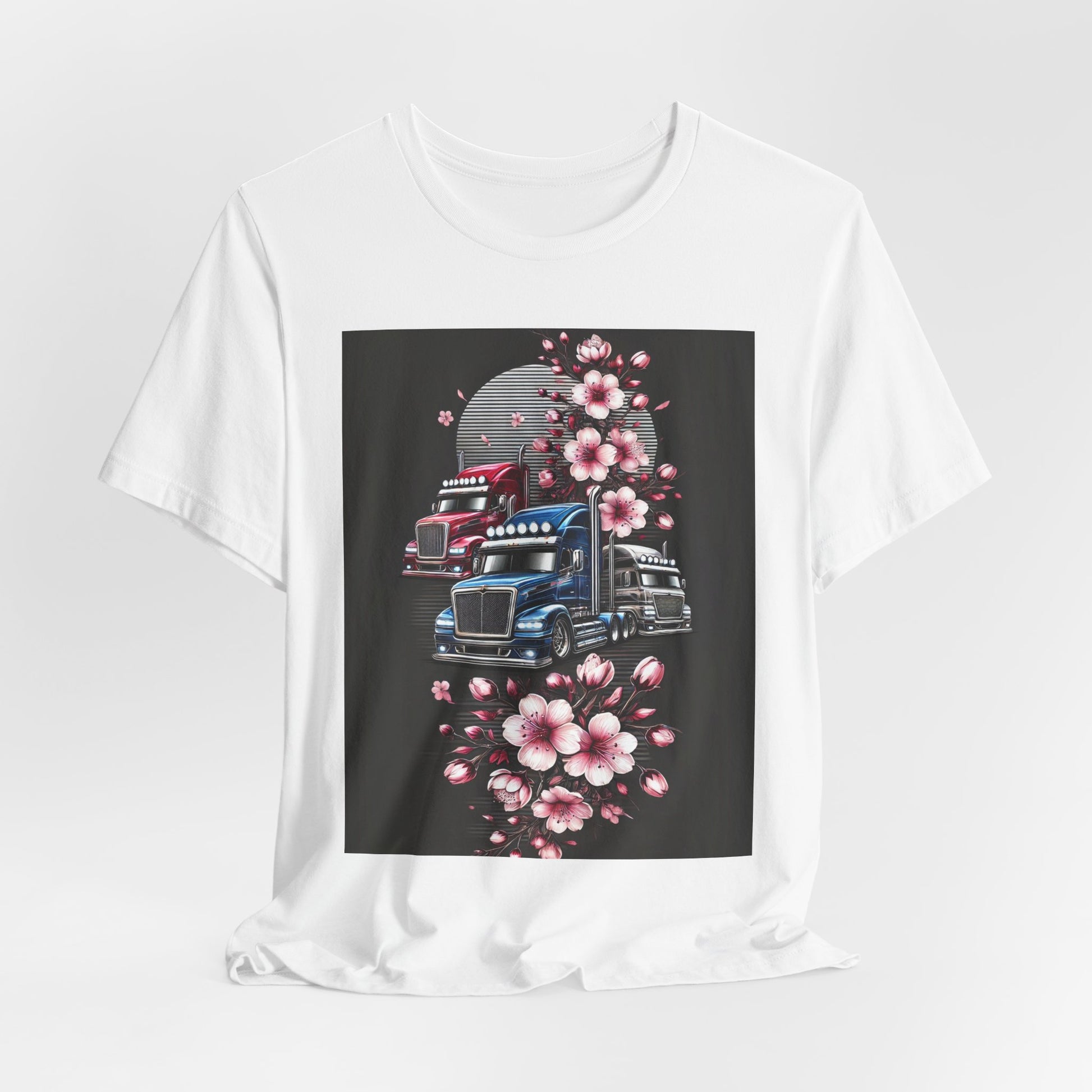 Cherry Blossom Convoy T-Shirt | Japanese Sakura x Modern Truck Art | Unique Graphic Tee for Drivers & Streetwear Lovers No.005
