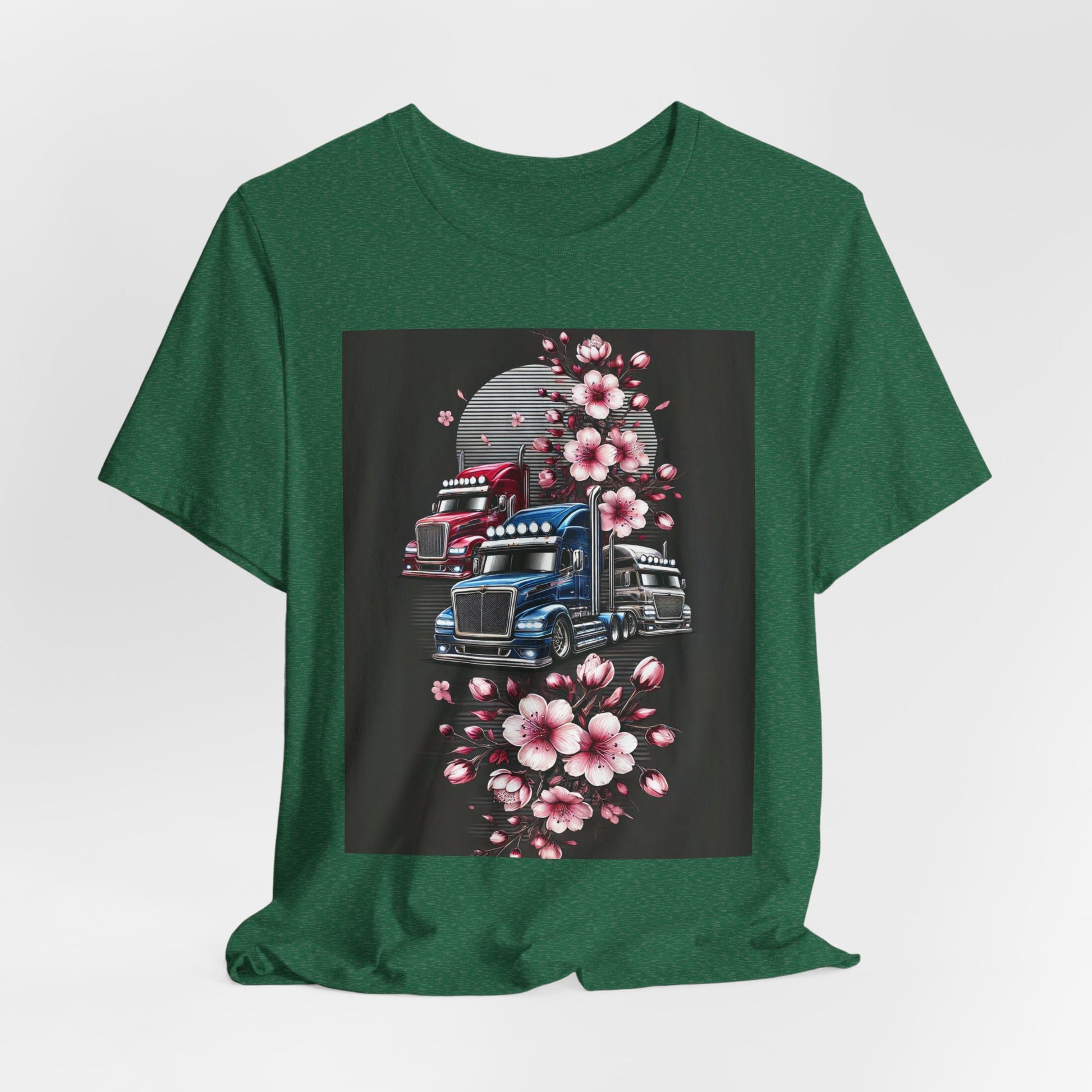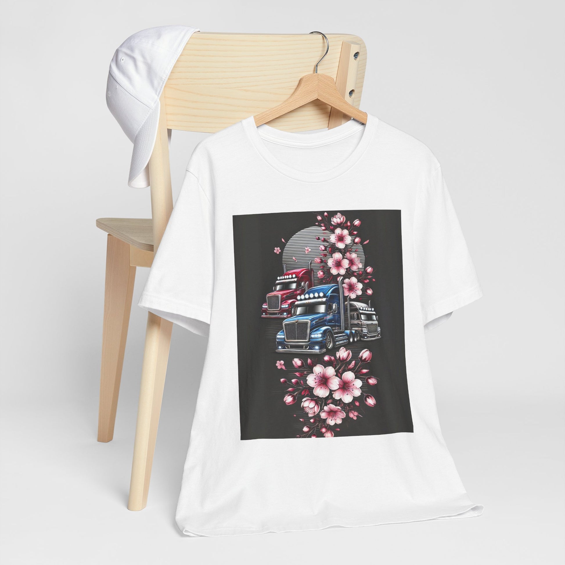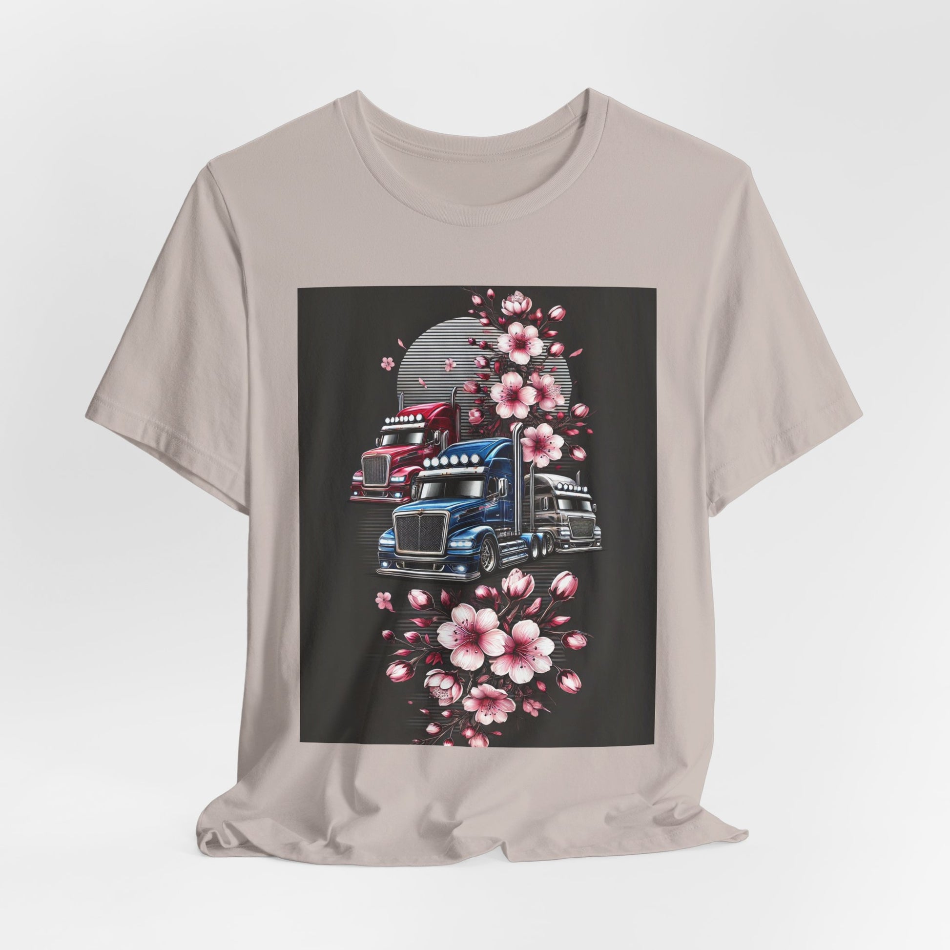 Cherry Blossom Convoy T-Shirt | Japanese Sakura x Modern Truck Art | Unique Graphic Tee for Drivers & Streetwear Lovers No.005