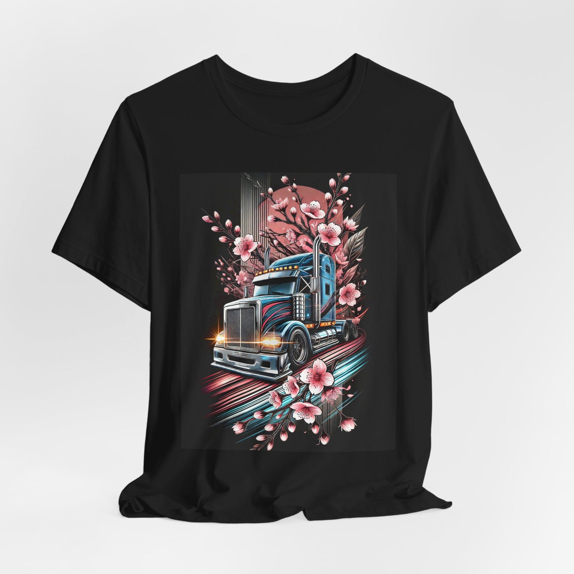 Cherry Blossom Convoy T-Shirt | Japanese Sakura x Modern Truck Art | Unique Graphic Tee for Drivers & Streetwear Lovers No.006