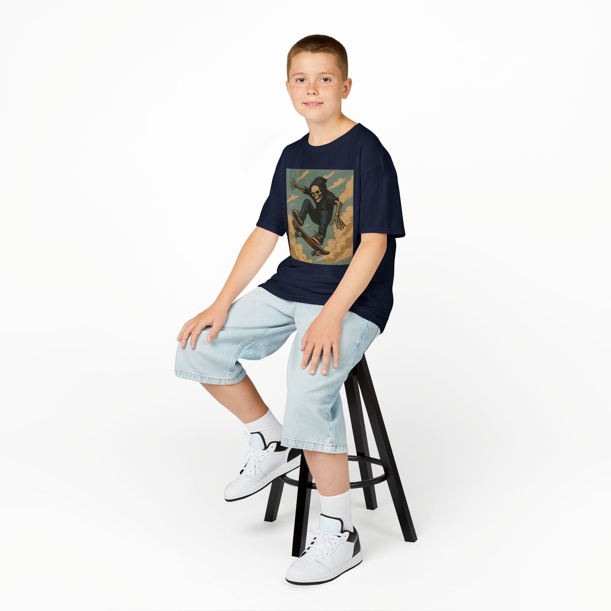 Whether they’re rolling through the skatepark or showing off at school, this shirt is perfect for kids who love bold graphics, skeletons, and streetwear energy.