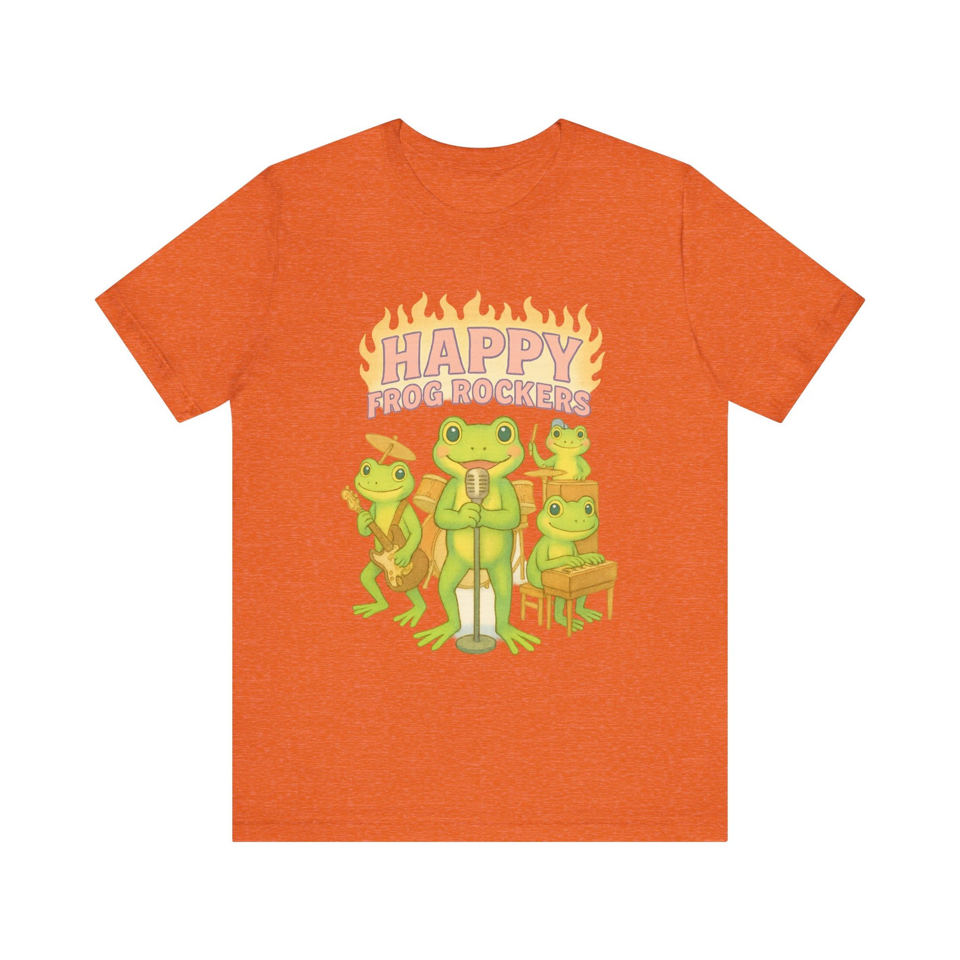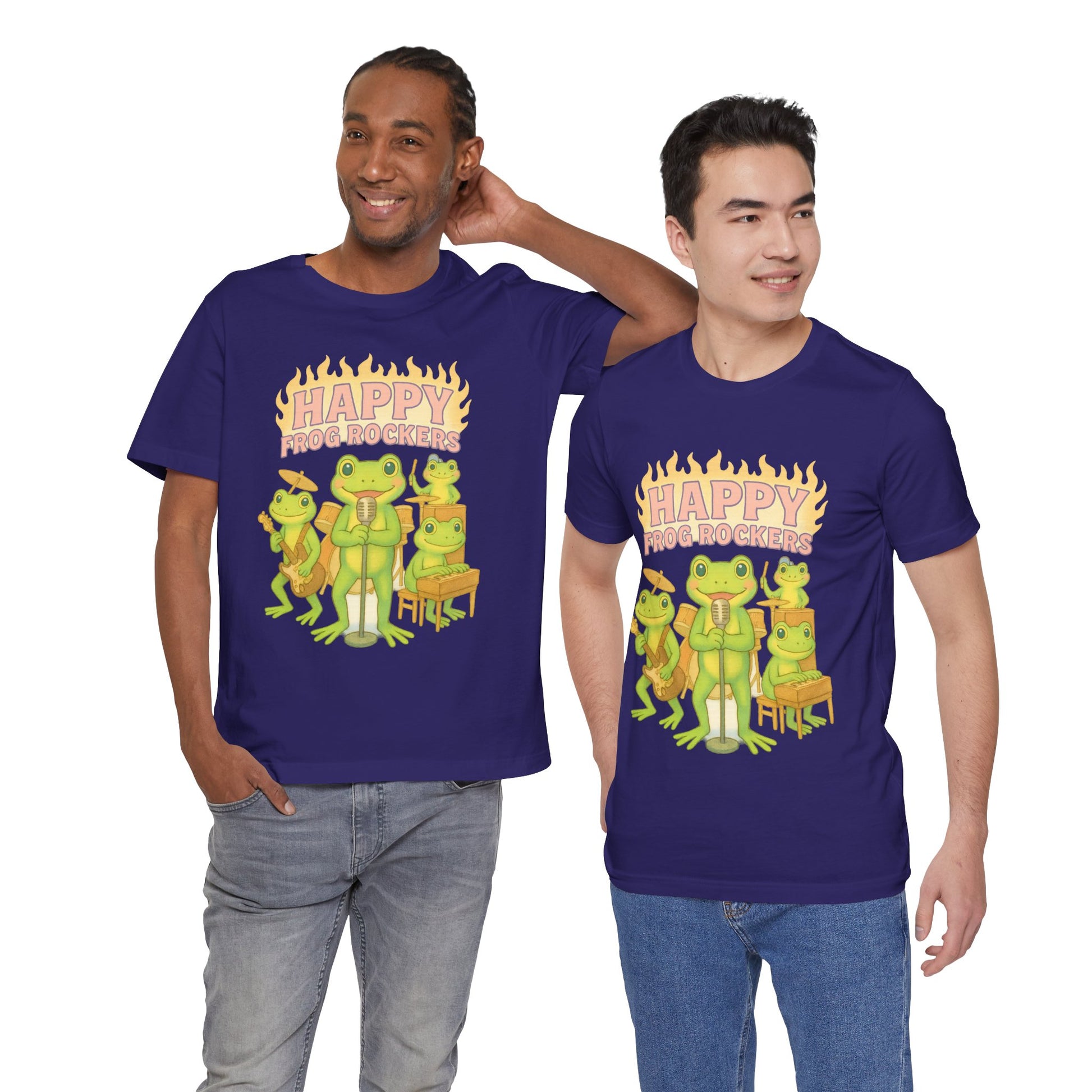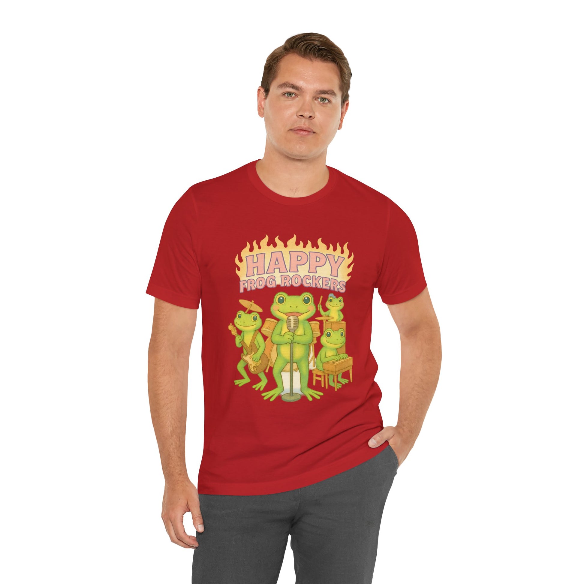 Happy Frog Rockers Album Cover Tee Cute Frog Band Shirt Vocal Guitar Piano Drums Pastel Art Gift for Music Lovers