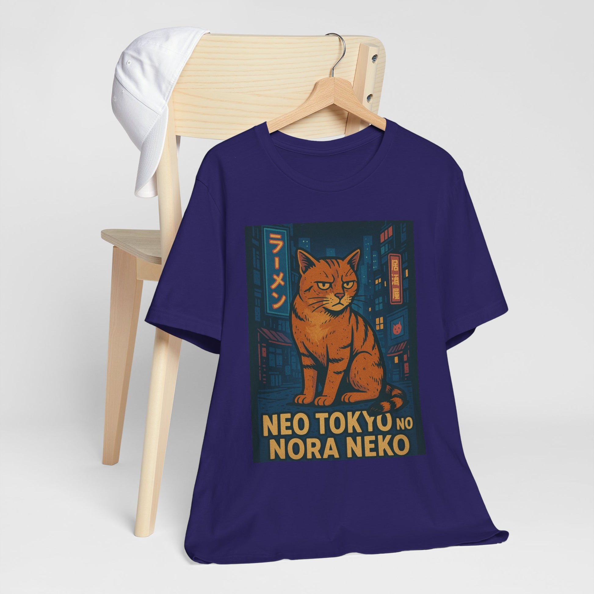 Neo Tokyo Stray Cat Shirt Retro Anime Poster Style Nora Neko Tee Ramen Izakaya Night Graphic Japan Streetwear Gift for Dad