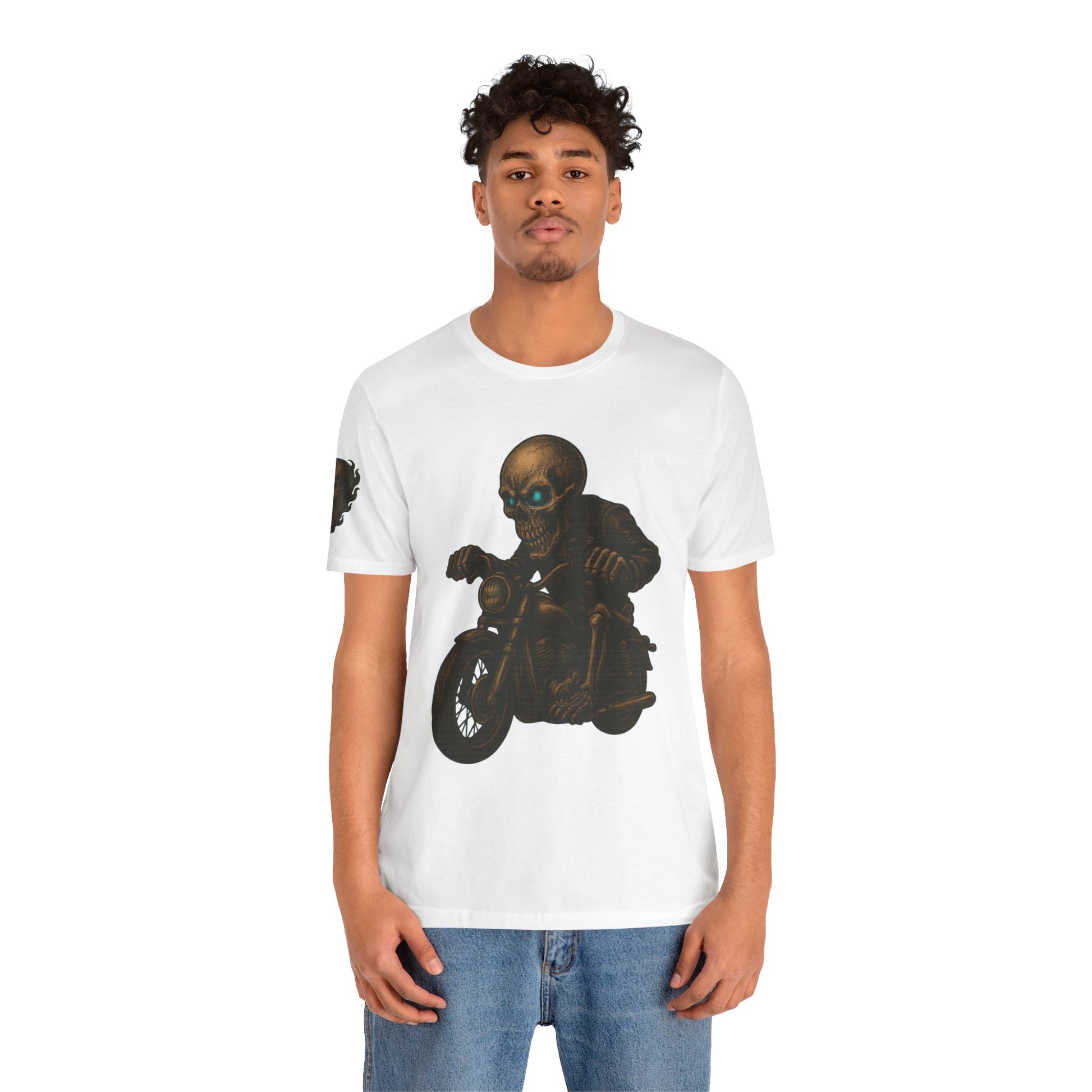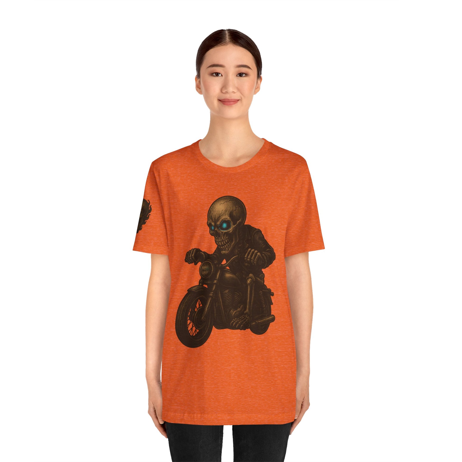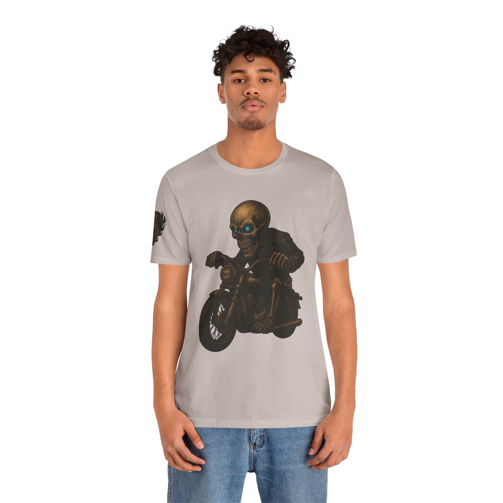 Ride into folklore with a bold Gashadokuro gripping the handlebars of a Harley Davidson. This detailed tattoo style illustration merges Japanese myth with raw biker culture creating a shirt that feels like both garage grit and gallery art.