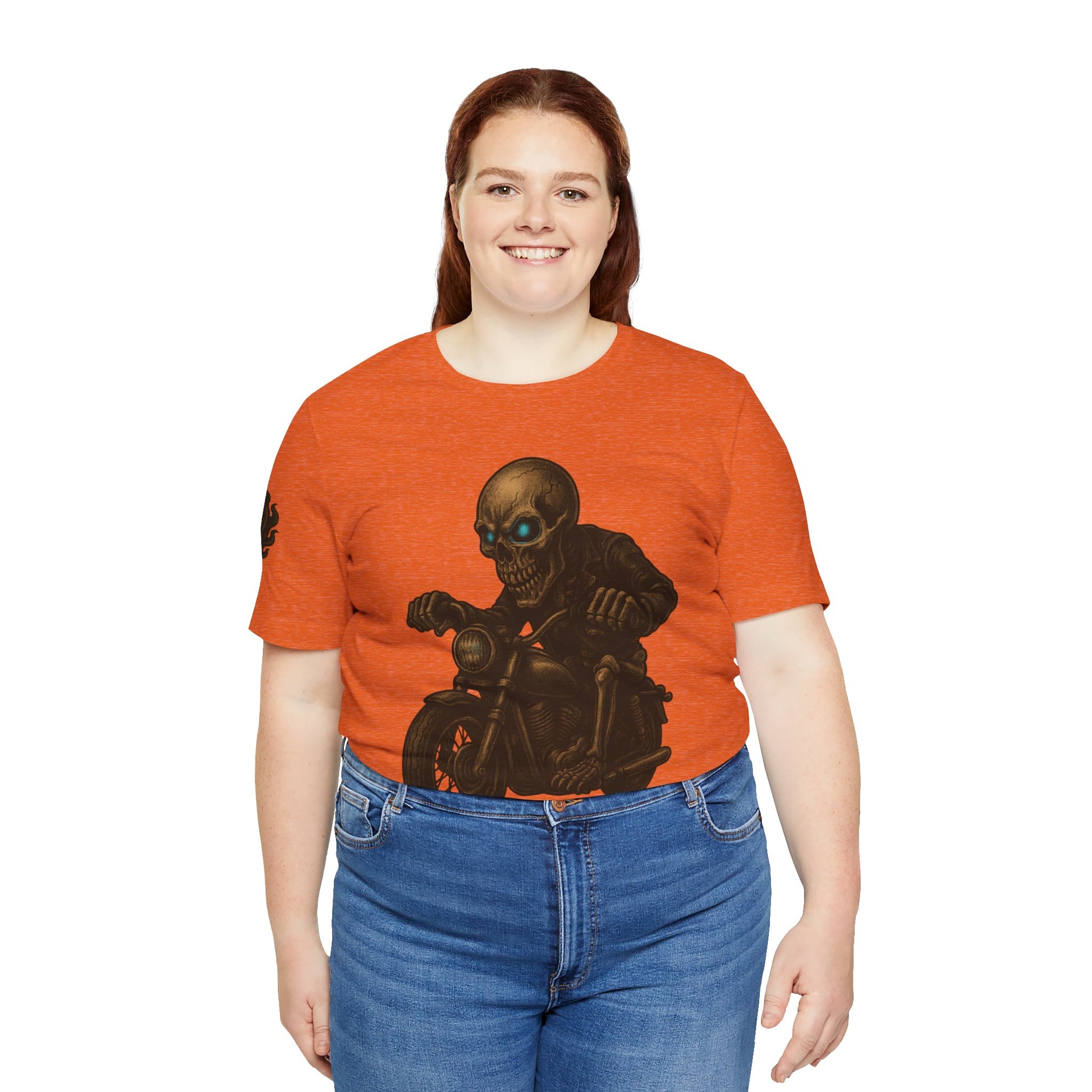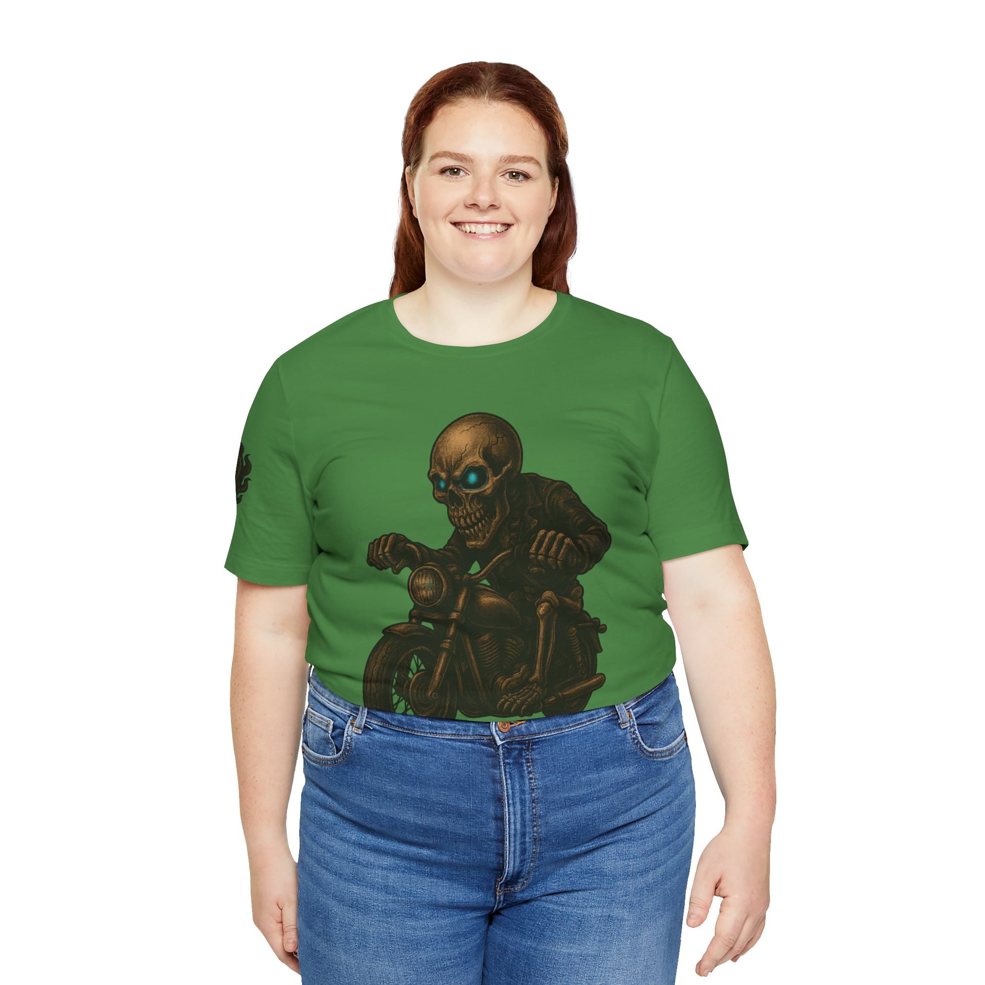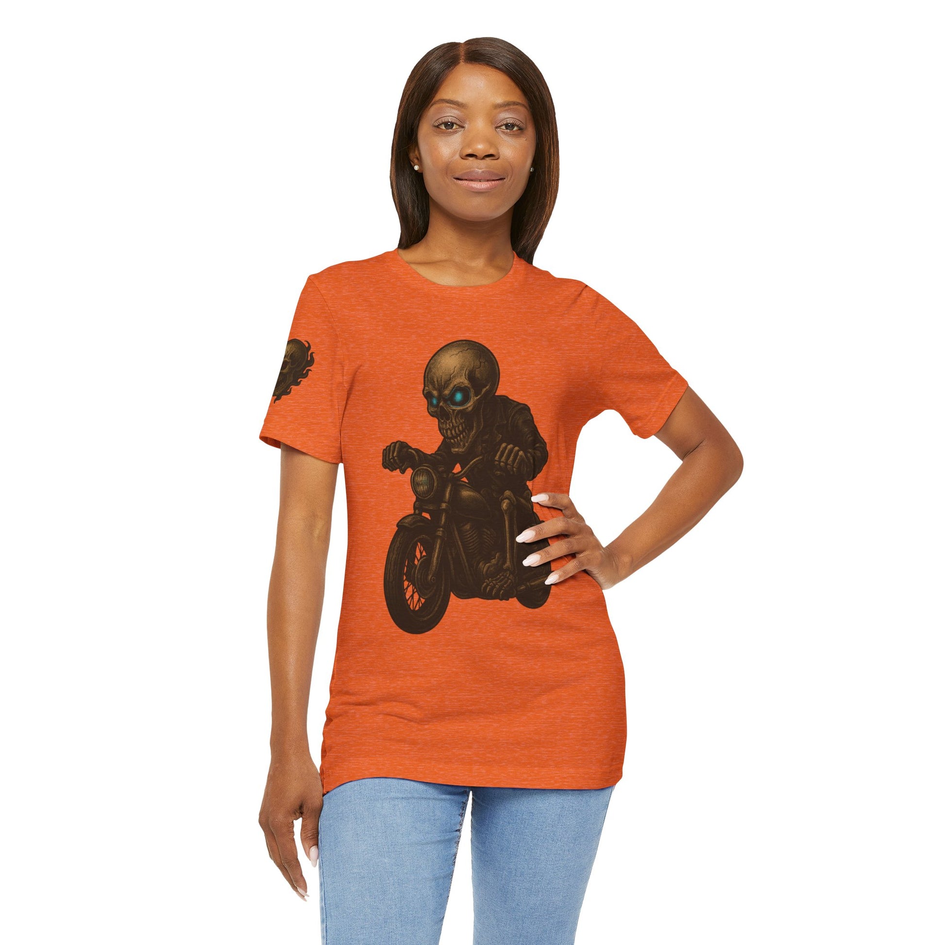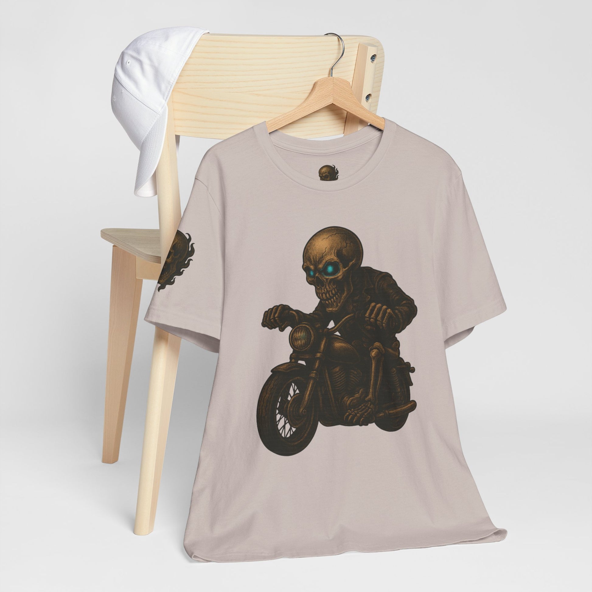 Ride into folklore with a bold Gashadokuro gripping the handlebars of a Harley Davidson. This detailed tattoo style illustration merges Japanese myth with raw biker culture creating a shirt that feels like both garage grit and gallery art.