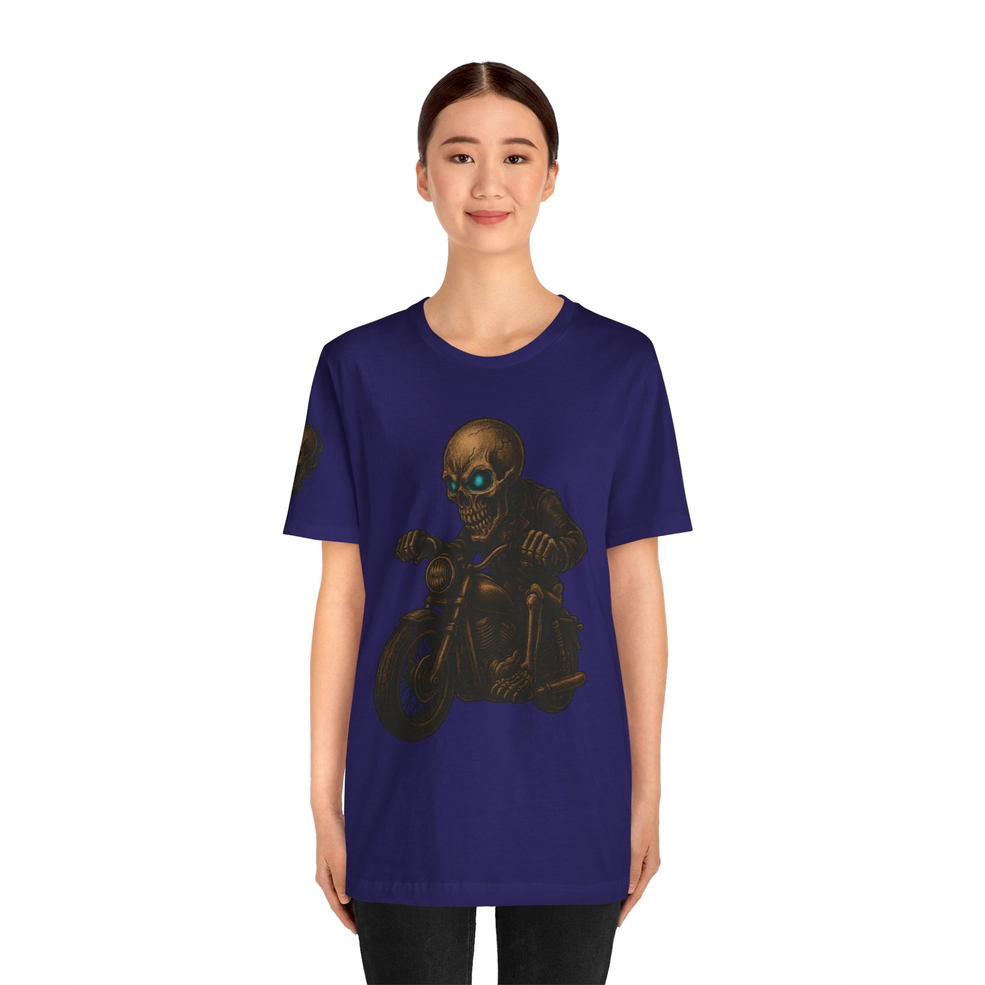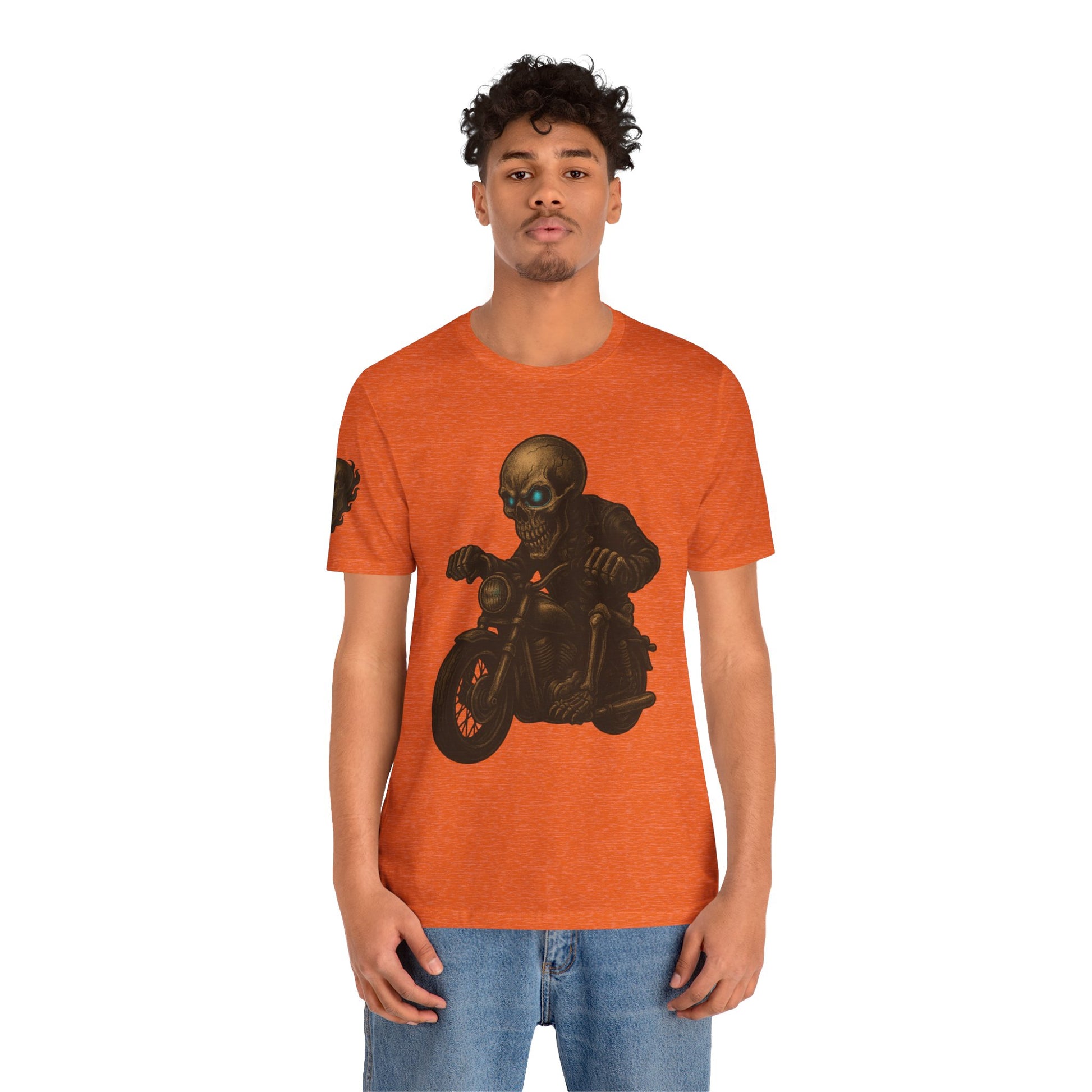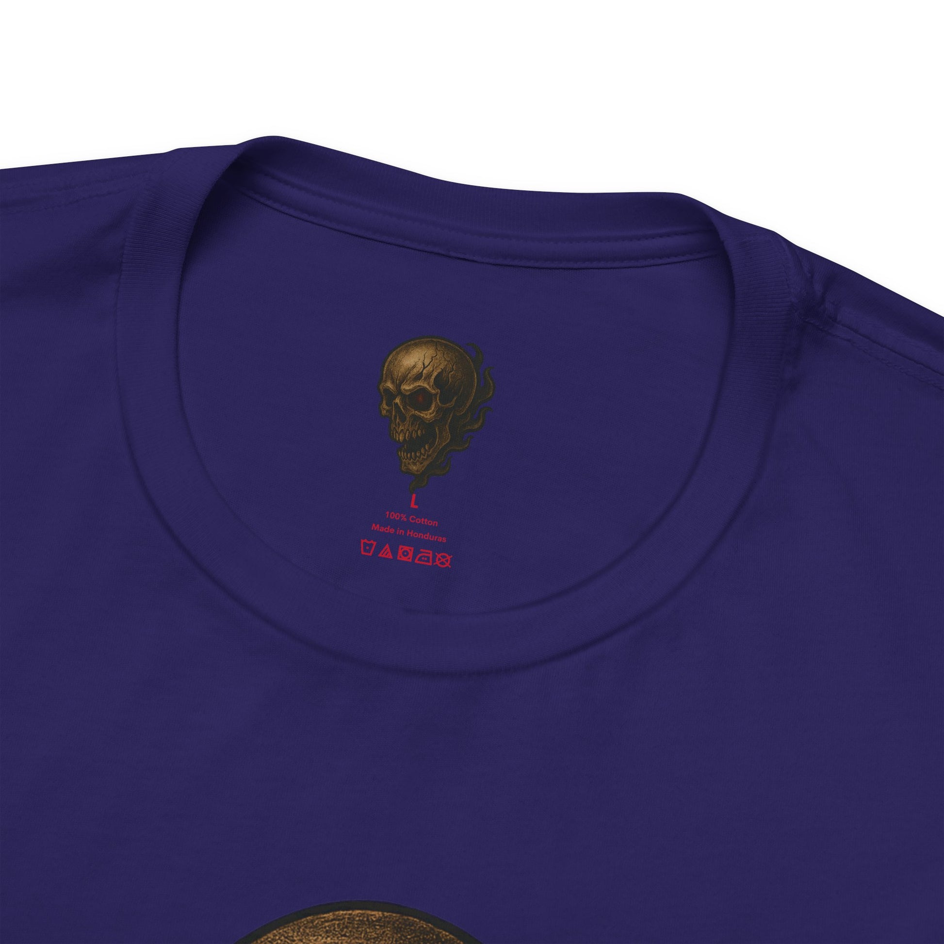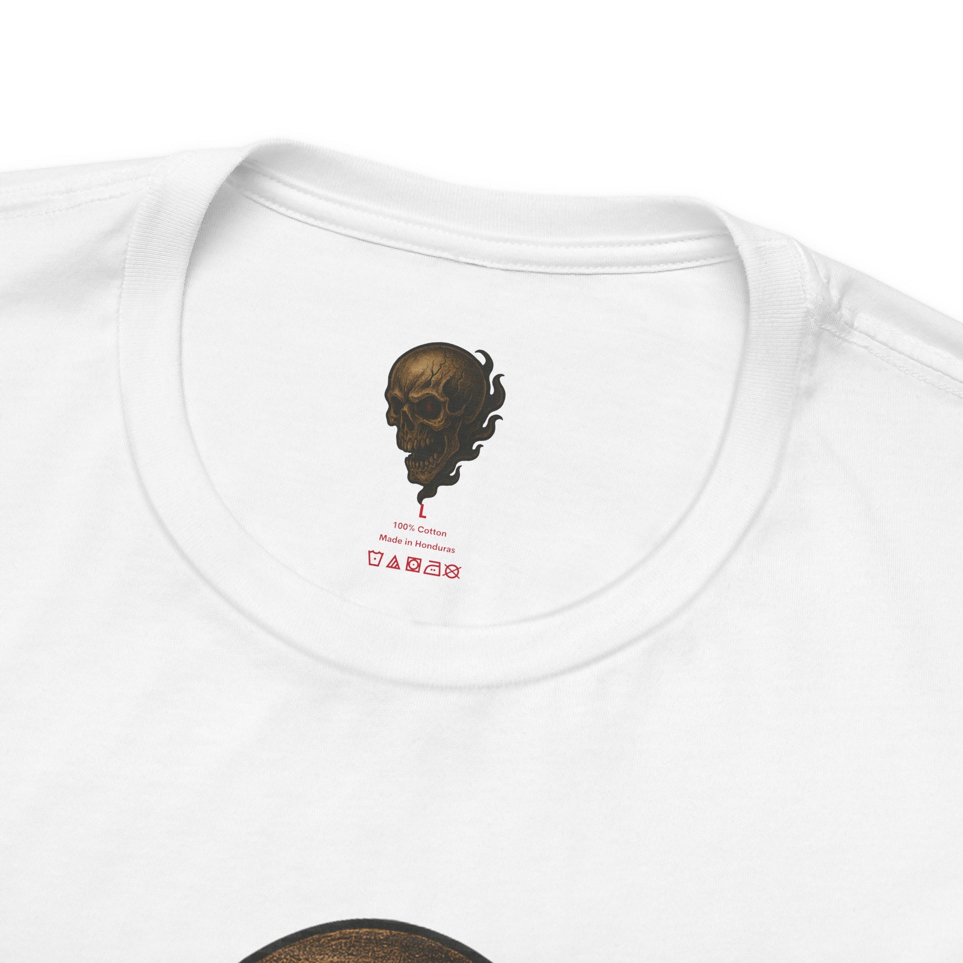 Unleash your inner darkness with this hauntingly intricate Ninja Skull T-shirt. The fearsome skeletal ninja is set against a hellish backdrop, brought to life in hyper-detailed gothic horror art. Perfect for fans of ninja legends, dark fantasy, Japanese myth ology, and edgy streetwear. A bold unisex statement piece for those drawn to mystery, danger, and shadow warriors. (The text on the T-shirt features fictional ninja script.) Whether you're heading to a festival, a concert, or just walking the streets in style — this tee lets you wear the darkness with confidence. This unisex jersey short sleeve tee is the perfect blend of comfort and style. Made from 100% Airlume combed and ring-spun cotton, it offers a lightweight and breathable feel, ideal for daily wear or casual outings. The vibrant printed design adds a fun, playful touch, making it a standout piece in any wardrobe. Whether you're at a summer beach party or gathering with friends, this tee promises a relaxed vibe that everyone will love. It's suitable for adults, making it an excellent gift for birthdays, holidays, or just because. Celebrate moments that matter with this versatile t-shirt that pairs effortlessly with jeans, shorts, or skirts. Product features - Constructed with side seams for shape retention and structural support. - Features a ribbed knit collar that maintains elasticity and shape. - Shoulder tape stabilizes seams, enhancing durability and comfort. - Utilizes advanced printing techniques for vibrant, detailed designs. - Tear-away label for added comfort, minimizing skin irritations. Care instructions - Machine wash: cold (max 30C or 90F) - Non-chlorine: bleach as needed - Tumble dry: low heat - Iron, steam or dry: medium heat - Do not dryclean