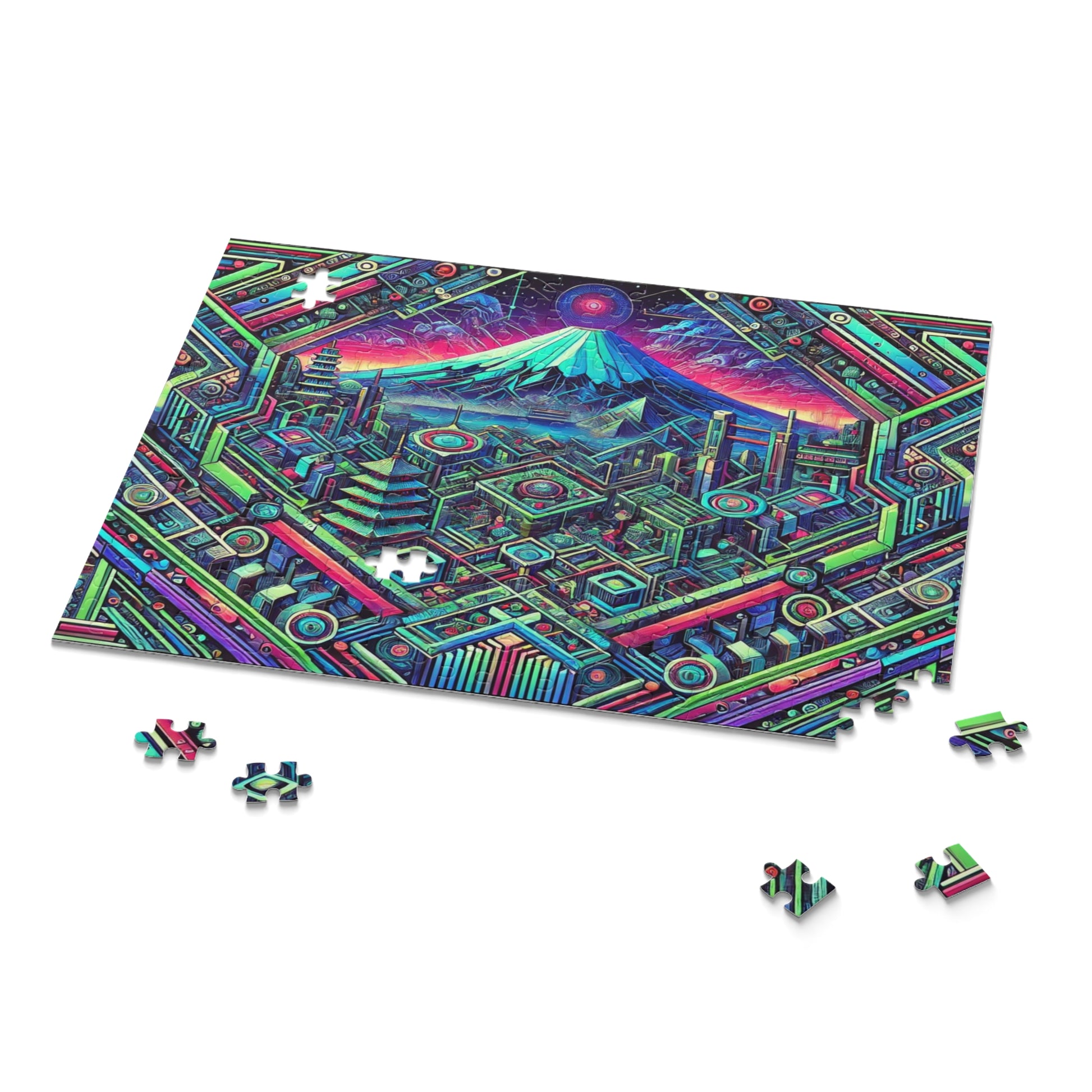 Neon x Geometric x Mt. Fuji! A super tricky puzzle with a cool sci-fi vibe-perfect brain workout for adults! 1000+ pieces of fun!