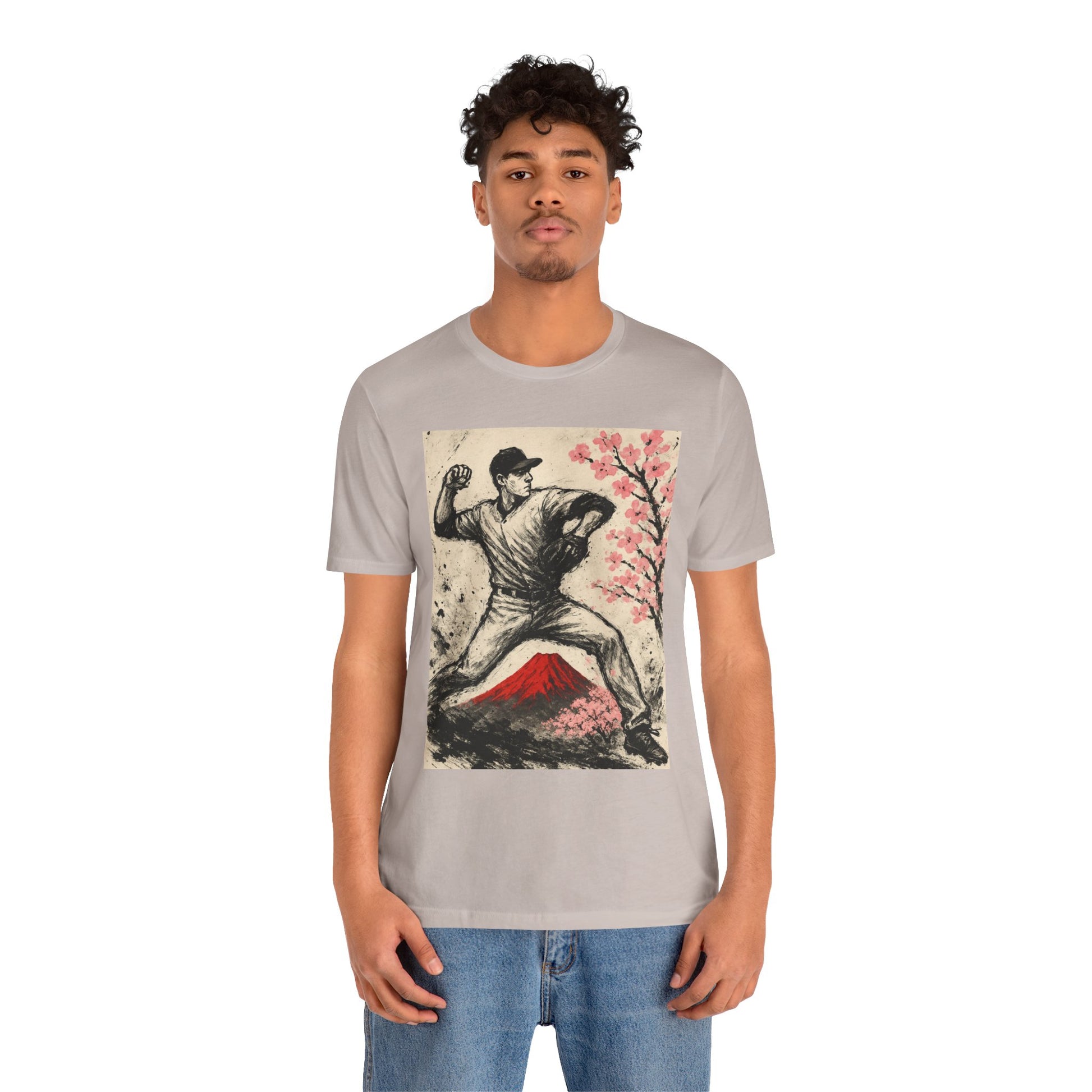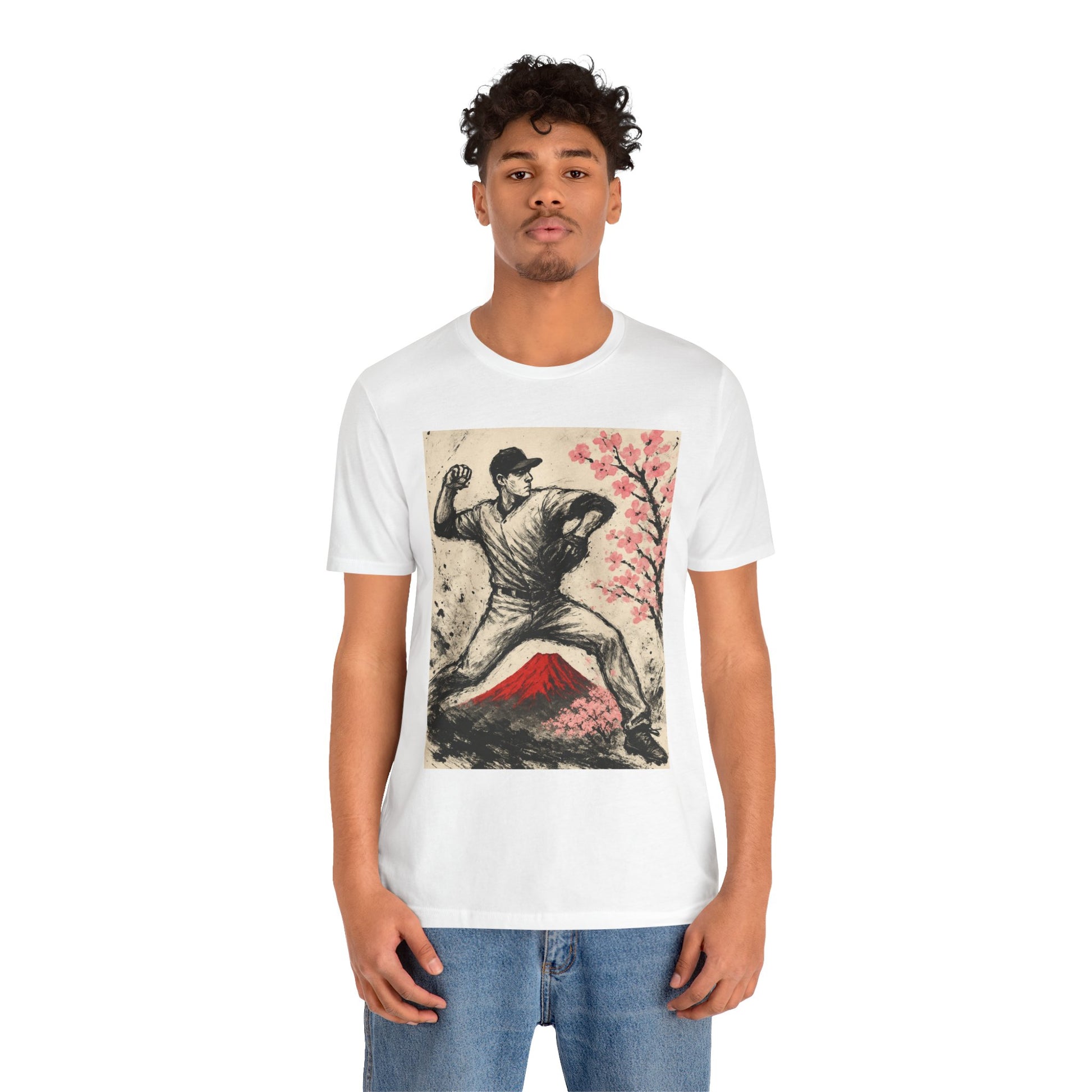 Pro Baseball Pitcher Sumi Ink Art Shirt Fuji Sakura Retro Japanese Print Windup Fastball Tee Japan Inspired Sports Art Gift for Dad