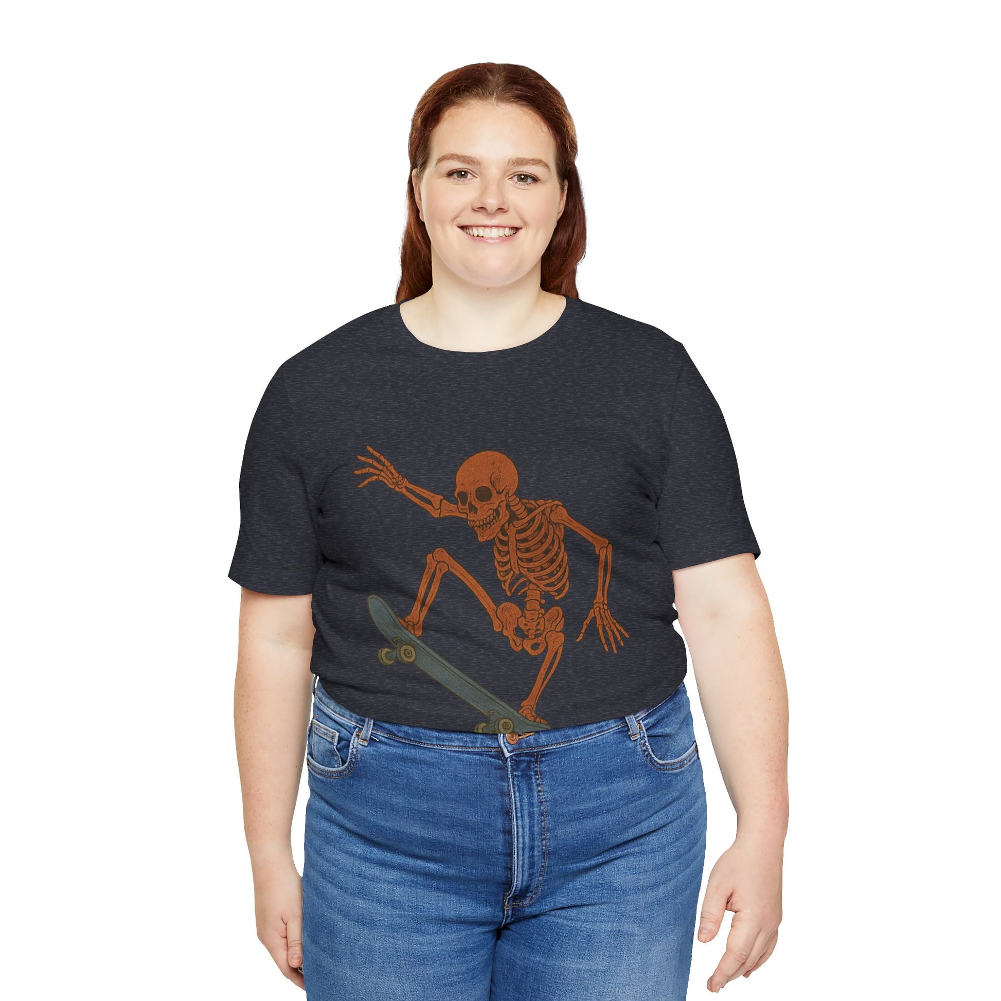 Skater Skeleton Graphic Tee for Adults - Vintage-Style Skeleton Skateboarding Shirt - Edgy Streetwear T-Shirt for Skaters and Art Lovers