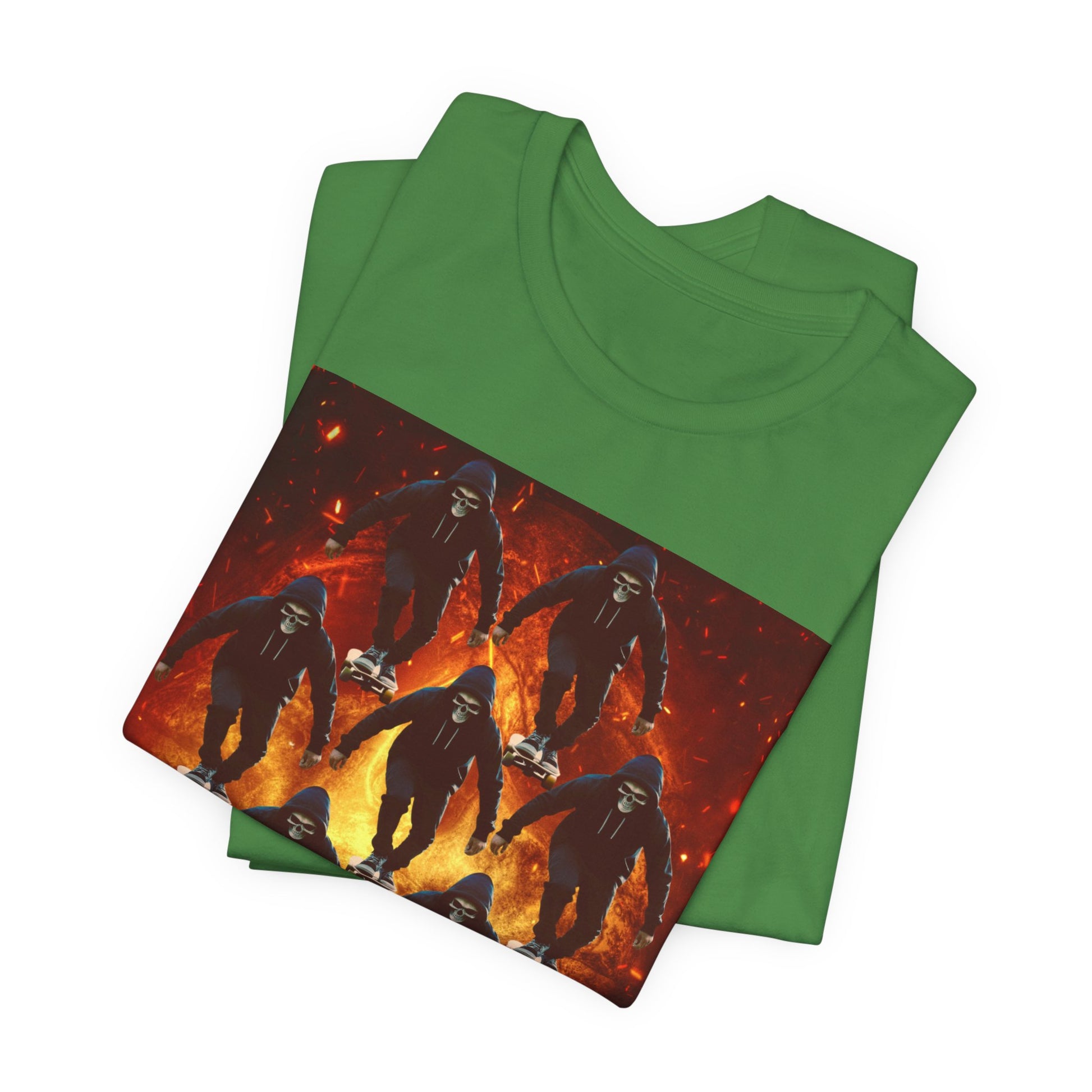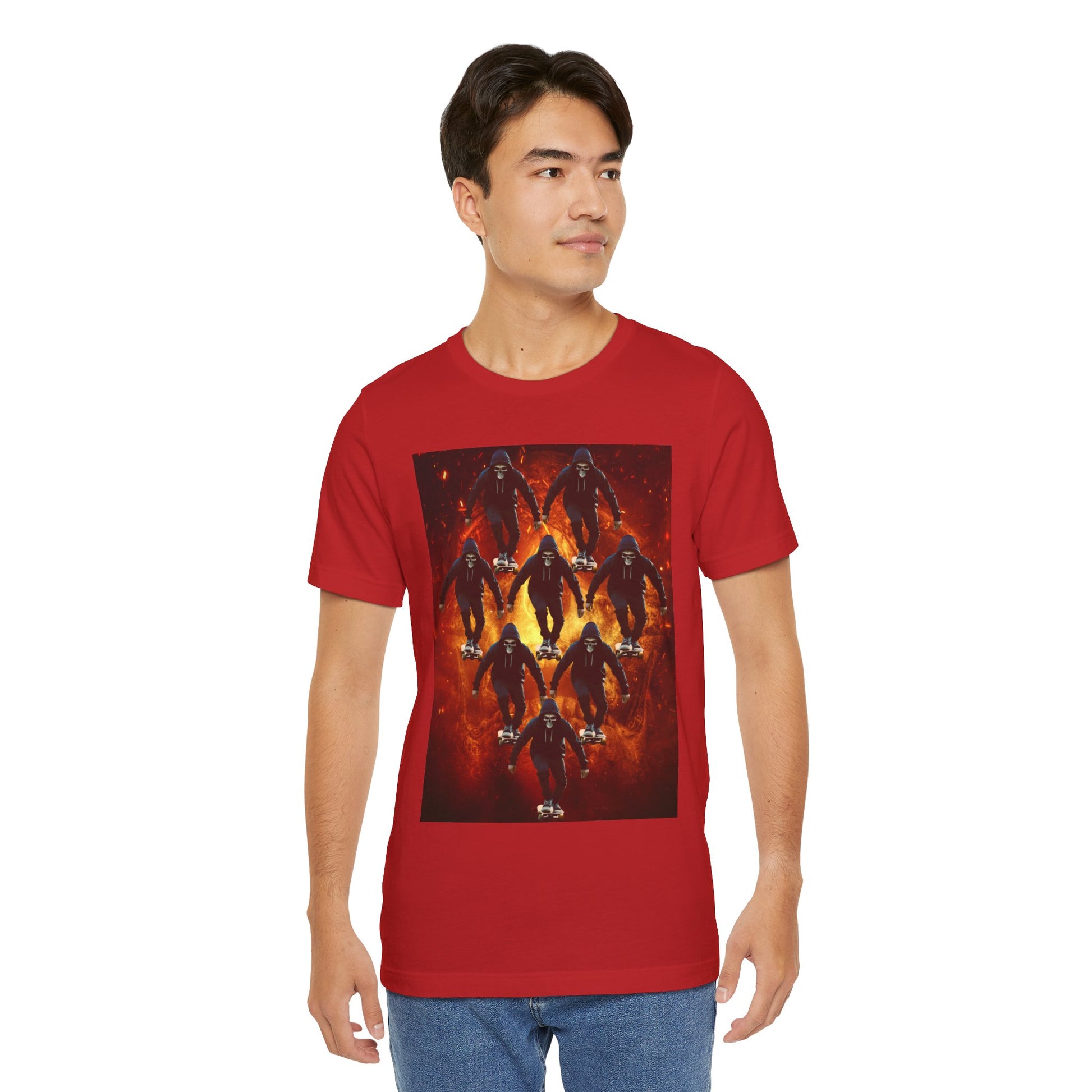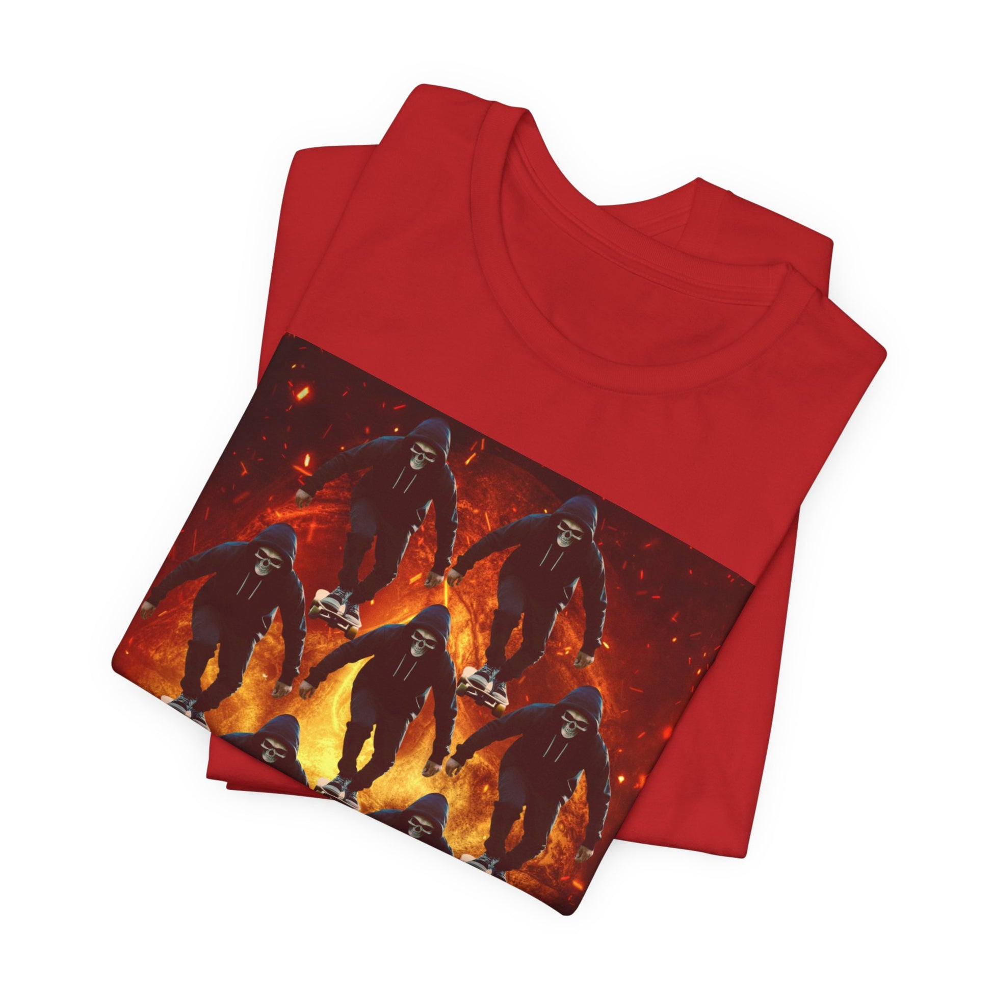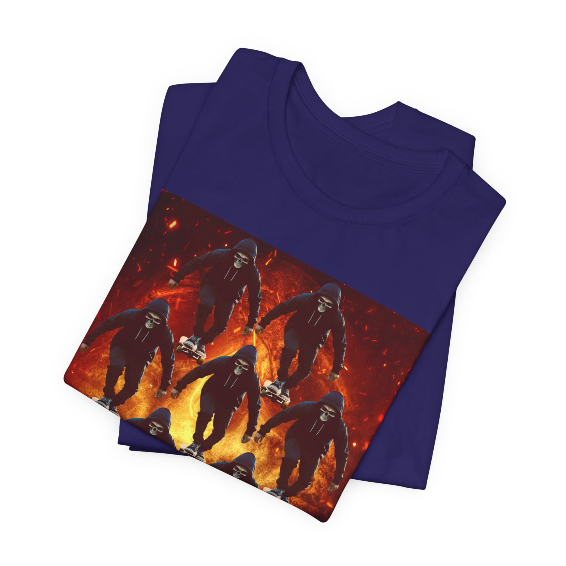 Unleash your inner darkness with this hauntingly intricate Ninja Skull T-shirt. The fearsome skeletal ninja is set against a hellish backdrop, brought to life in hyper-detailed gothic horror art. Perfect for fans of ninja legends, dark fantasy, Japanese myth ology, and edgy streetwear. A bold unisex statement piece for those drawn to mystery, danger, and shadow warriors. (The text on the T-shirt features fictional ninja script.) Whether you're heading to a festival, a concert, or just walking the streets in style — this tee lets you wear the darkness with confidence. This unisex jersey short sleeve tee is the perfect blend of comfort and style. Made from 100% Airlume combed and ring-spun cotton, it offers a lightweight and breathable feel, ideal for daily wear or casual outings. The vibrant printed design adds a fun, playful touch, making it a standout piece in any wardrobe. Whether you're at a summer beach party or gathering with friends, this tee promises a relaxed vibe that everyone will love. It's suitable for adults, making it an excellent gift for birthdays, holidays, or just because. Celebrate moments that matter with this versatile t-shirt that pairs effortlessly with jeans, shorts, or skirts. Product features - Constructed with side seams for shape retention and structural support. - Features a ribbed knit collar that maintains elasticity and shape. - Shoulder tape stabilizes seams, enhancing durability and comfort. - Utilizes advanced printing techniques for vibrant, detailed designs. - Tear-away label for added comfort, minimizing skin irritations. Care instructions - Machine wash: cold (max 30C or 90F) - Non-chlorine: bleach as needed - Tumble dry: low heat - Iron, steam or dry: medium heat - Do not dryclean