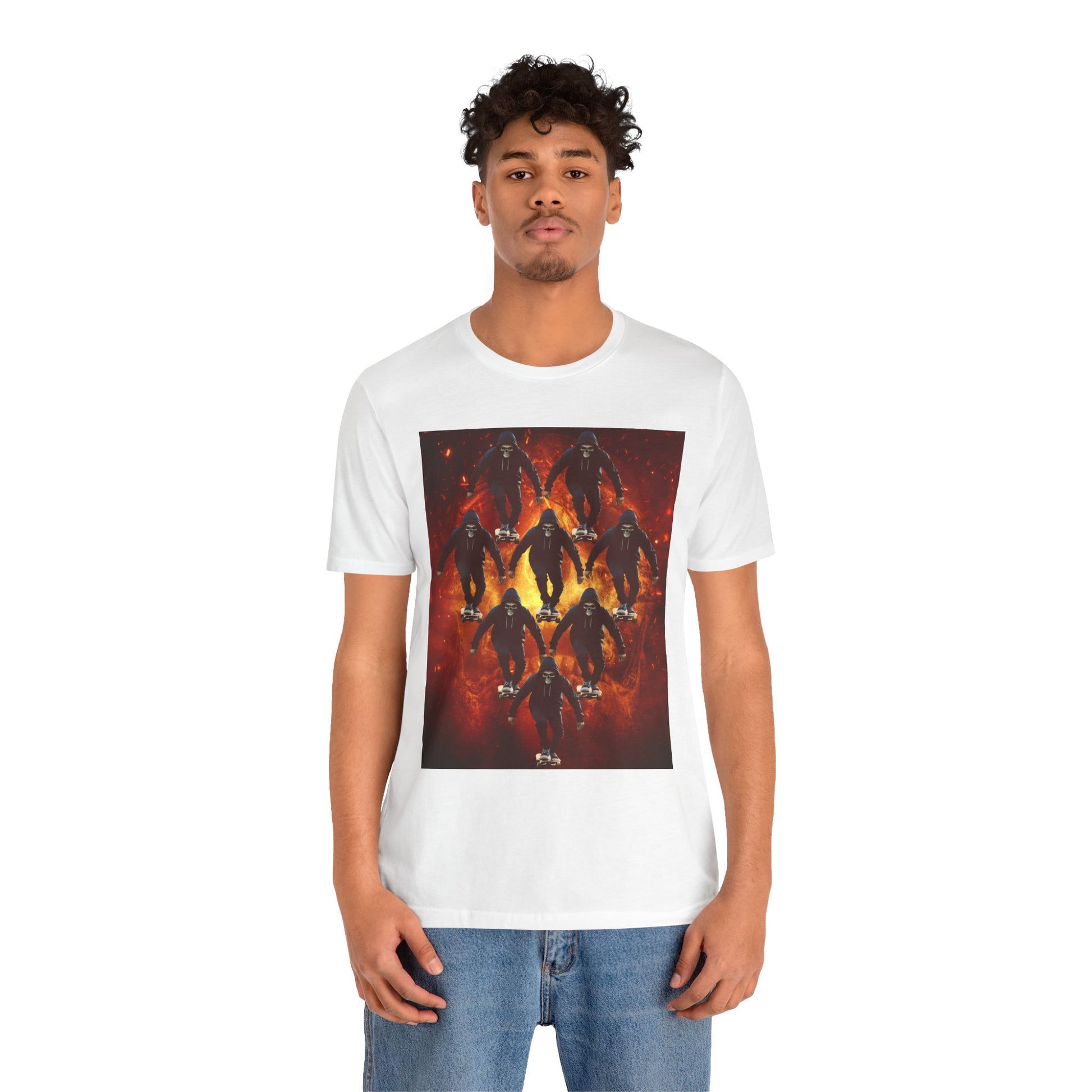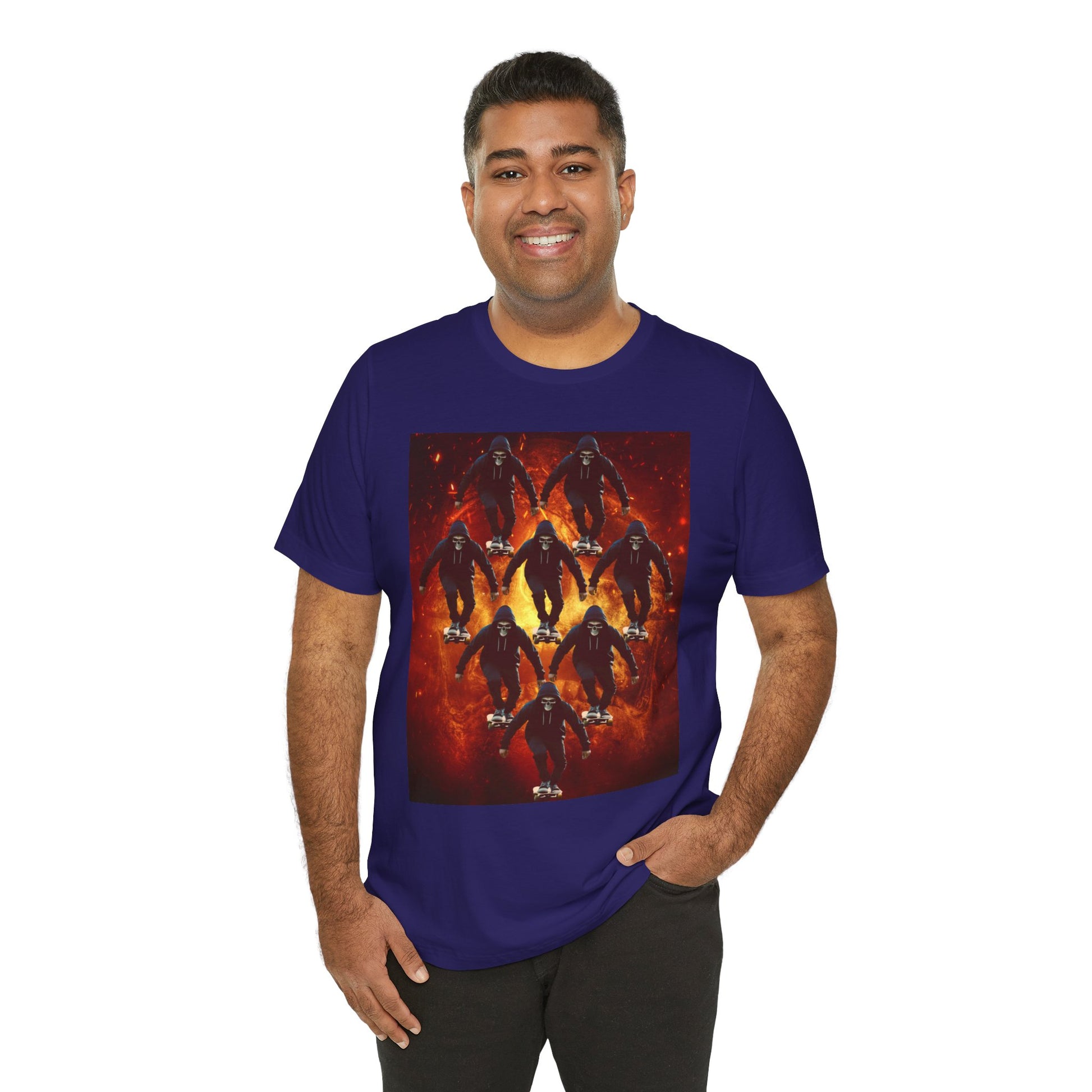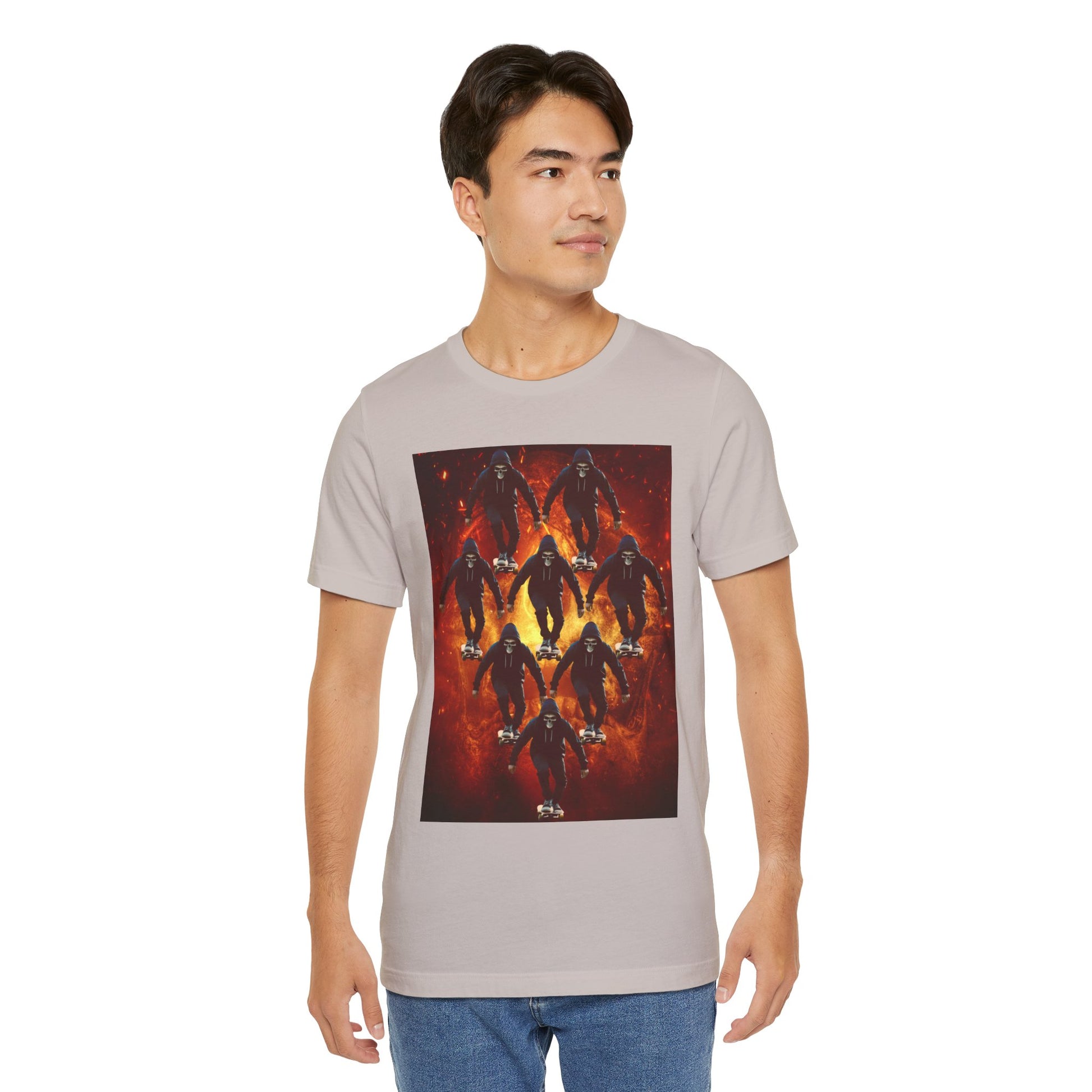 Unleash your inner darkness with this hauntingly intricate Ninja Skull T-shirt. The fearsome skeletal ninja is set against a hellish backdrop, brought to life in hyper-detailed gothic horror art. Perfect for fans of ninja legends, dark fantasy, Japanese myth ology, and edgy streetwear. A bold unisex statement piece for those drawn to mystery, danger, and shadow warriors. (The text on the T-shirt features fictional ninja script.) Whether you're heading to a festival, a concert, or just walking the streets in style — this tee lets you wear the darkness with confidence. This unisex jersey short sleeve tee is the perfect blend of comfort and style. Made from 100% Airlume combed and ring-spun cotton, it offers a lightweight and breathable feel, ideal for daily wear or casual outings. The vibrant printed design adds a fun, playful touch, making it a standout piece in any wardrobe. Whether you're at a summer beach party or gathering with friends, this tee promises a relaxed vibe that everyone will love. It's suitable for adults, making it an excellent gift for birthdays, holidays, or just because. Celebrate moments that matter with this versatile t-shirt that pairs effortlessly with jeans, shorts, or skirts. Product features - Constructed with side seams for shape retention and structural support. - Features a ribbed knit collar that maintains elasticity and shape. - Shoulder tape stabilizes seams, enhancing durability and comfort. - Utilizes advanced printing techniques for vibrant, detailed designs. - Tear-away label for added comfort, minimizing skin irritations. Care instructions - Machine wash: cold (max 30C or 90F) - Non-chlorine: bleach as needed - Tumble dry: low heat - Iron, steam or dry: medium heat - Do not dryclean