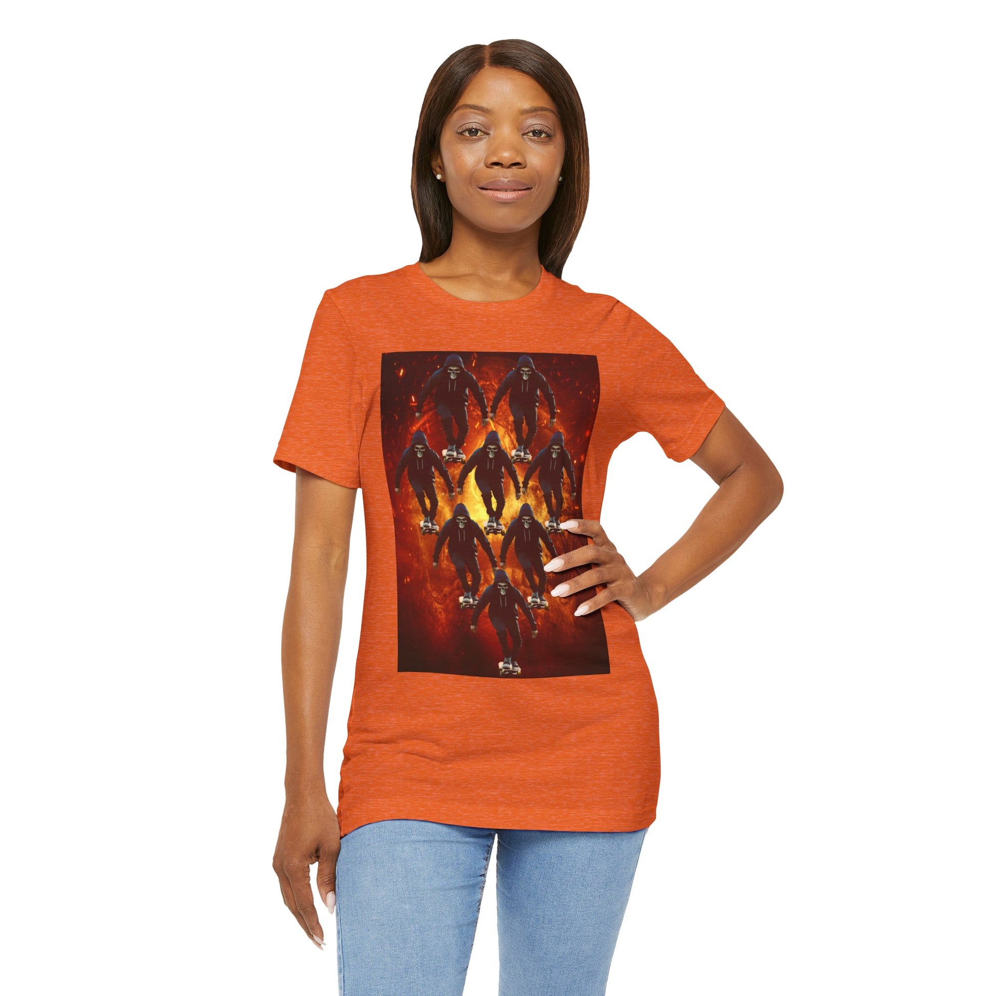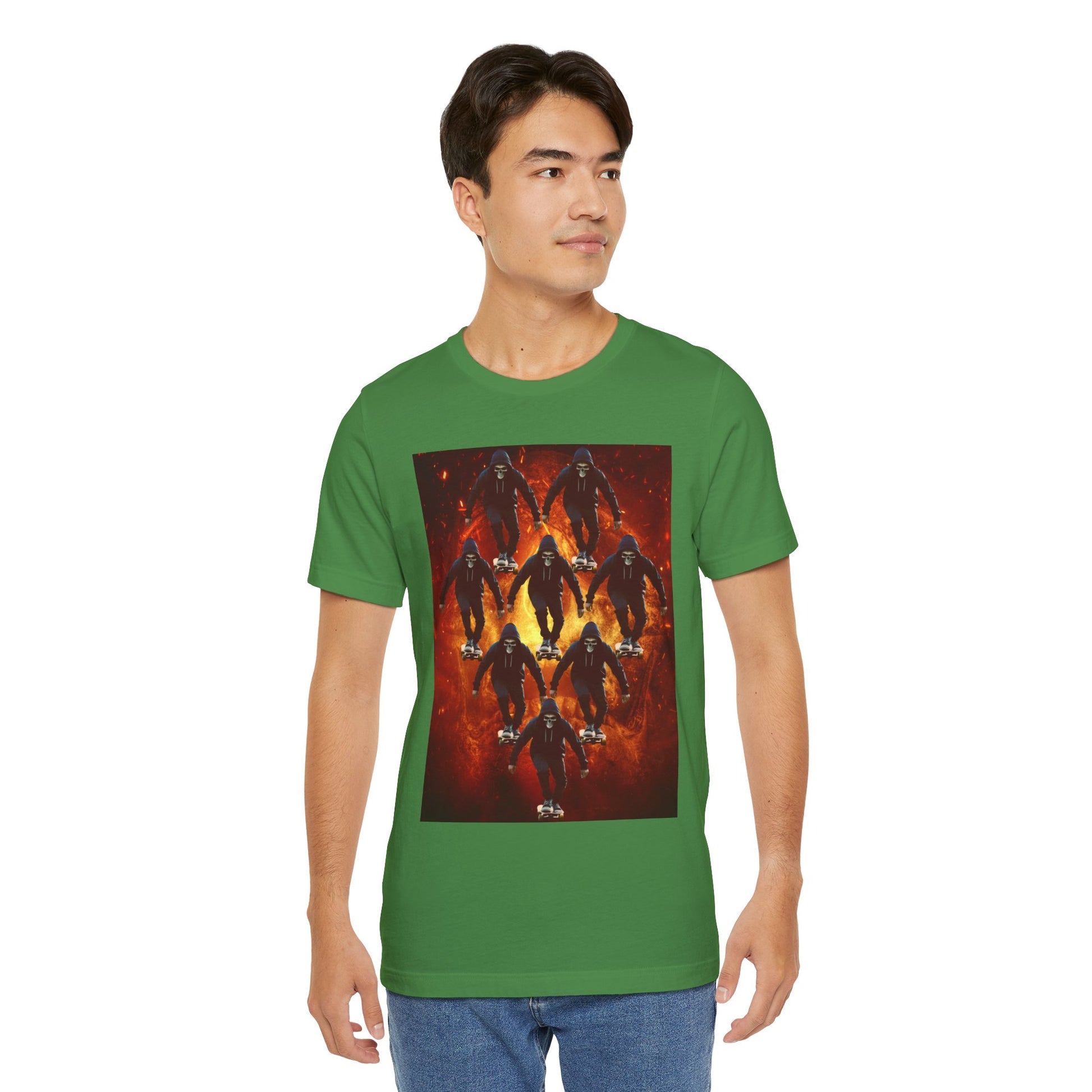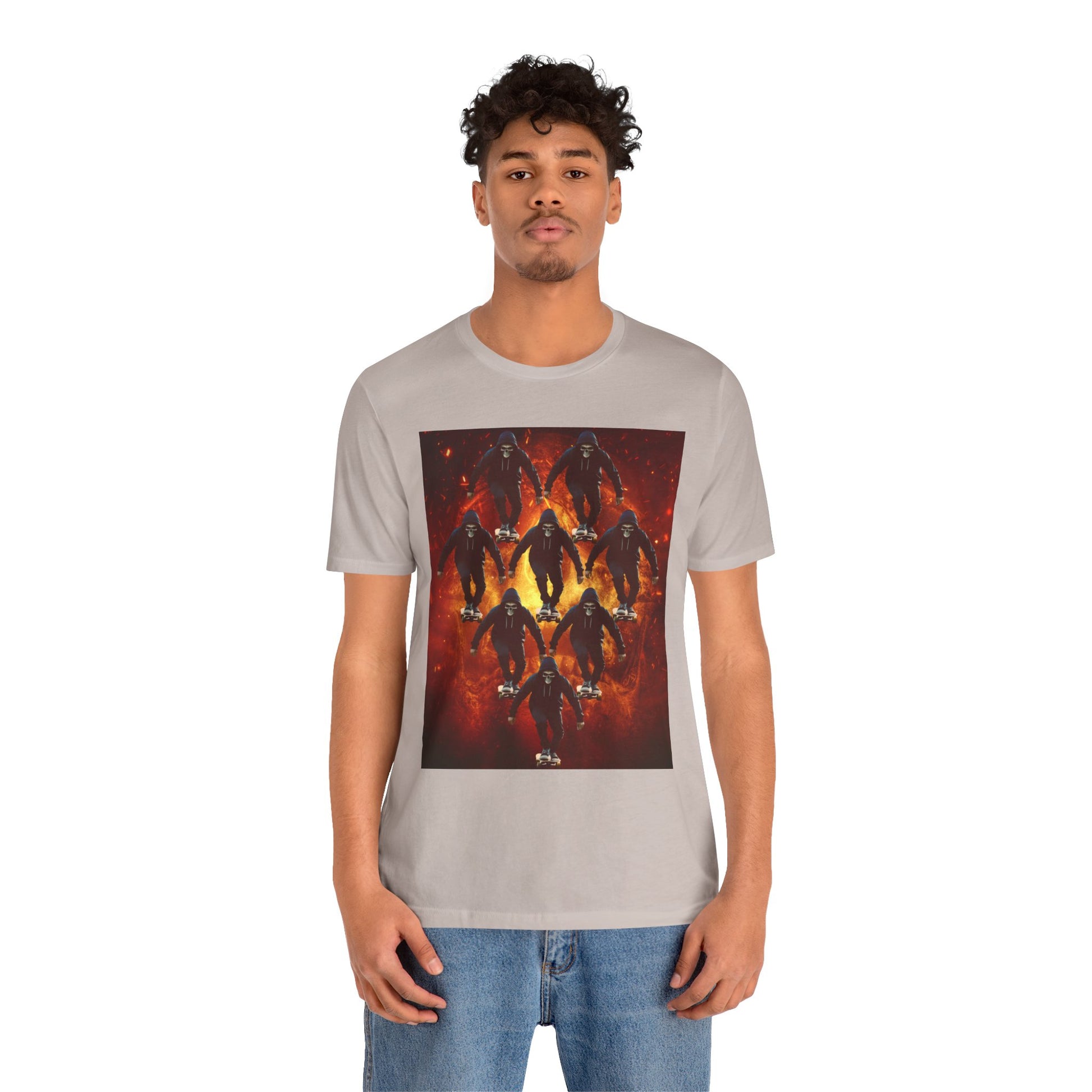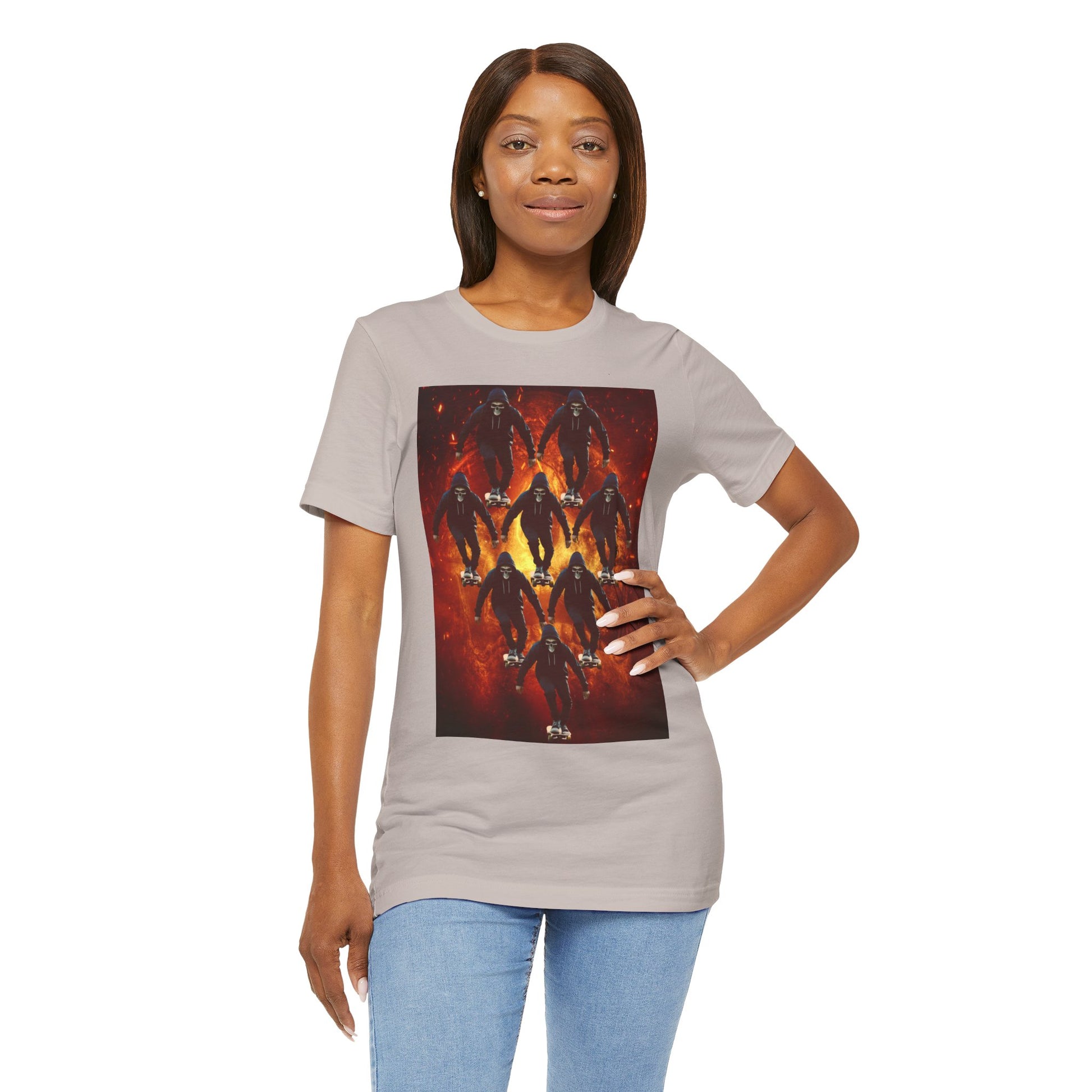 Unleash your inner darkness with this hauntingly intricate Ninja Skull T-shirt. The fearsome skeletal ninja is set against a hellish backdrop, brought to life in hyper-detailed gothic horror art. Perfect for fans of ninja legends, dark fantasy, Japanese myth ology, and edgy streetwear. A bold unisex statement piece for those drawn to mystery, danger, and shadow warriors. (The text on the T-shirt features fictional ninja script.) Whether you're heading to a festival, a concert, or just walking the streets in style — this tee lets you wear the darkness with confidence. This unisex jersey short sleeve tee is the perfect blend of comfort and style. Made from 100% Airlume combed and ring-spun cotton, it offers a lightweight and breathable feel, ideal for daily wear or casual outings. The vibrant printed design adds a fun, playful touch, making it a standout piece in any wardrobe. Whether you're at a summer beach party or gathering with friends, this tee promises a relaxed vibe that everyone will love. It's suitable for adults, making it an excellent gift for birthdays, holidays, or just because. Celebrate moments that matter with this versatile t-shirt that pairs effortlessly with jeans, shorts, or skirts. Product features - Constructed with side seams for shape retention and structural support. - Features a ribbed knit collar that maintains elasticity and shape. - Shoulder tape stabilizes seams, enhancing durability and comfort. - Utilizes advanced printing techniques for vibrant, detailed designs. - Tear-away label for added comfort, minimizing skin irritations. Care instructions - Machine wash: cold (max 30C or 90F) - Non-chlorine: bleach as needed - Tumble dry: low heat - Iron, steam or dry: medium heat - Do not dryclean