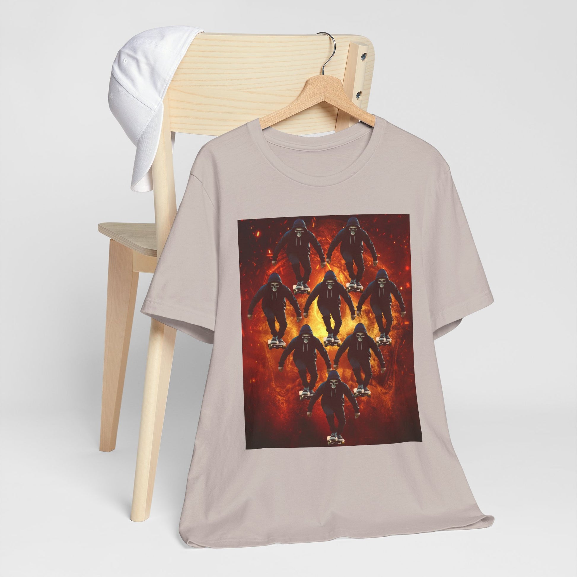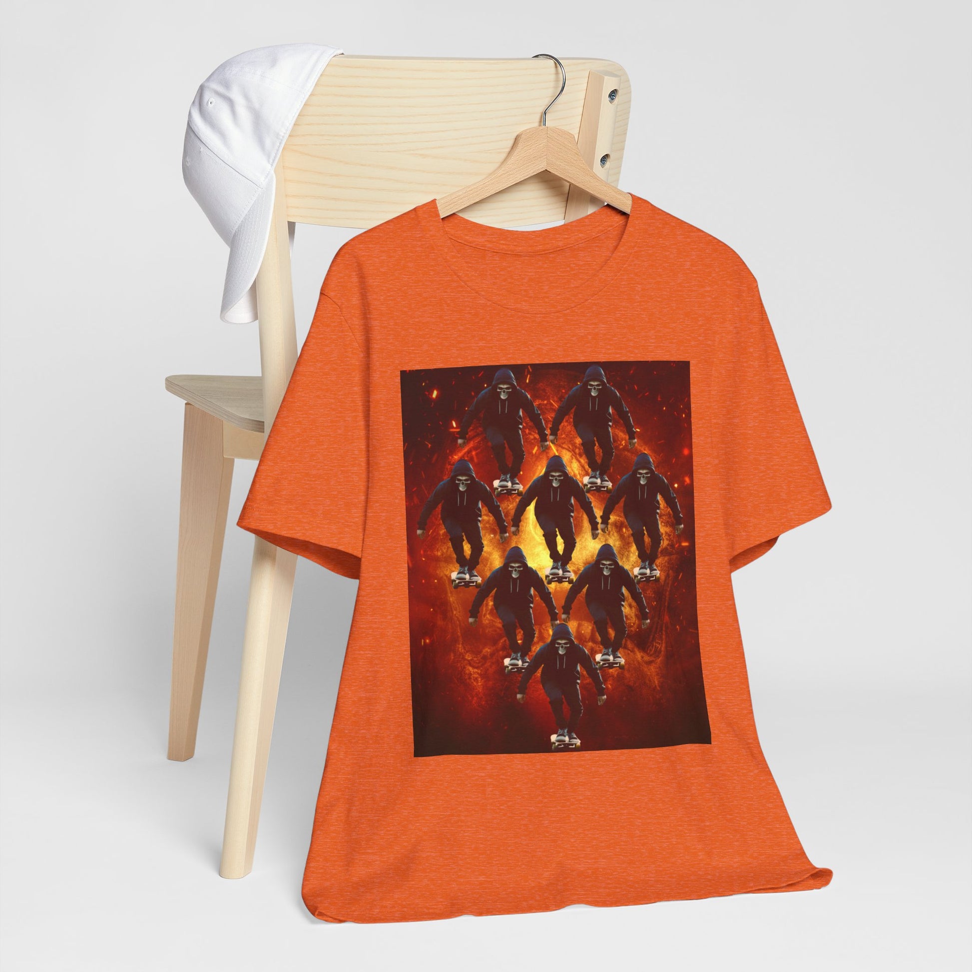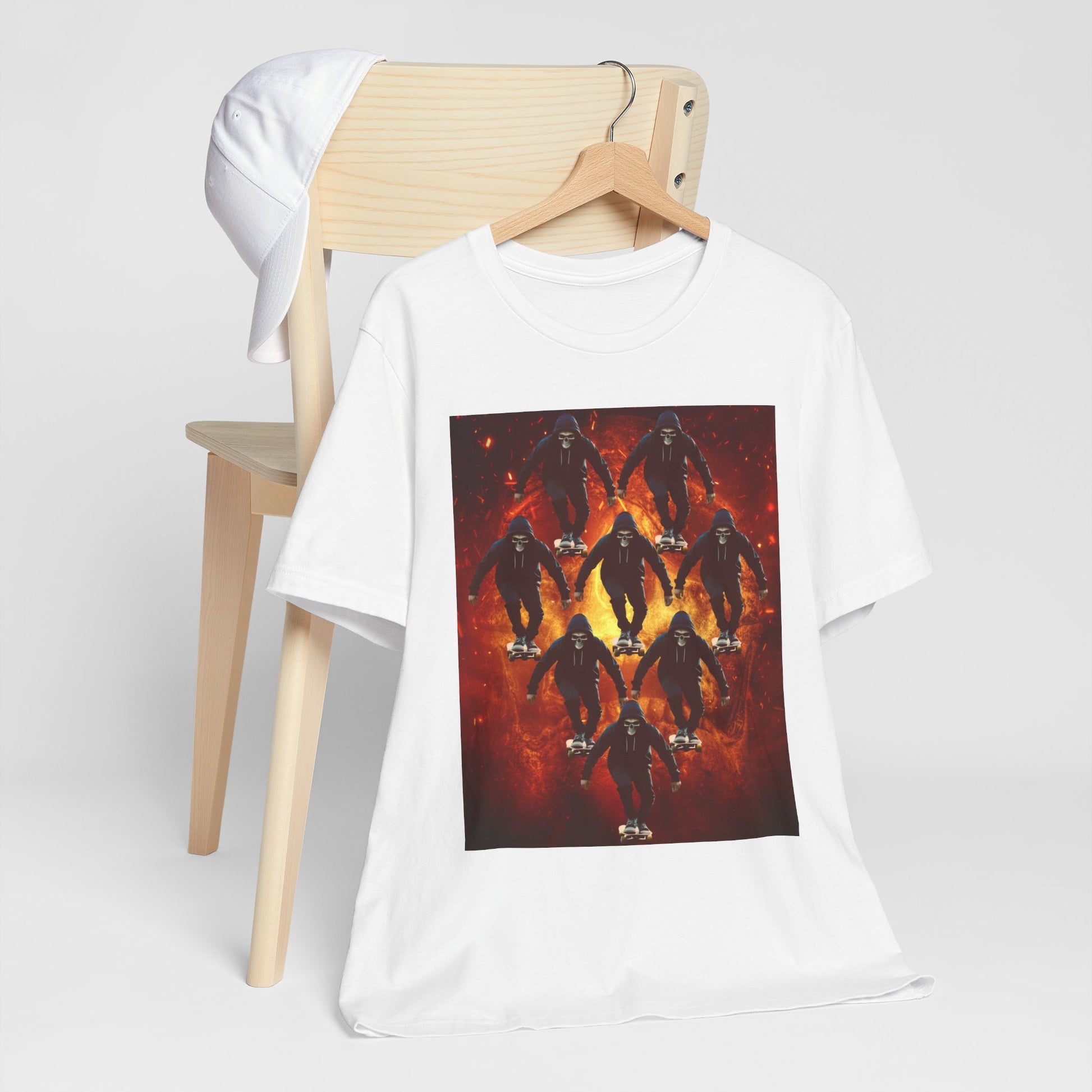 Skull Hoodie Skater T Shirt Urban Streetwear Skateboard Graphic Tee Gothic Horror Skate Style Gift for Dad Teen Boys Halloween Vibe