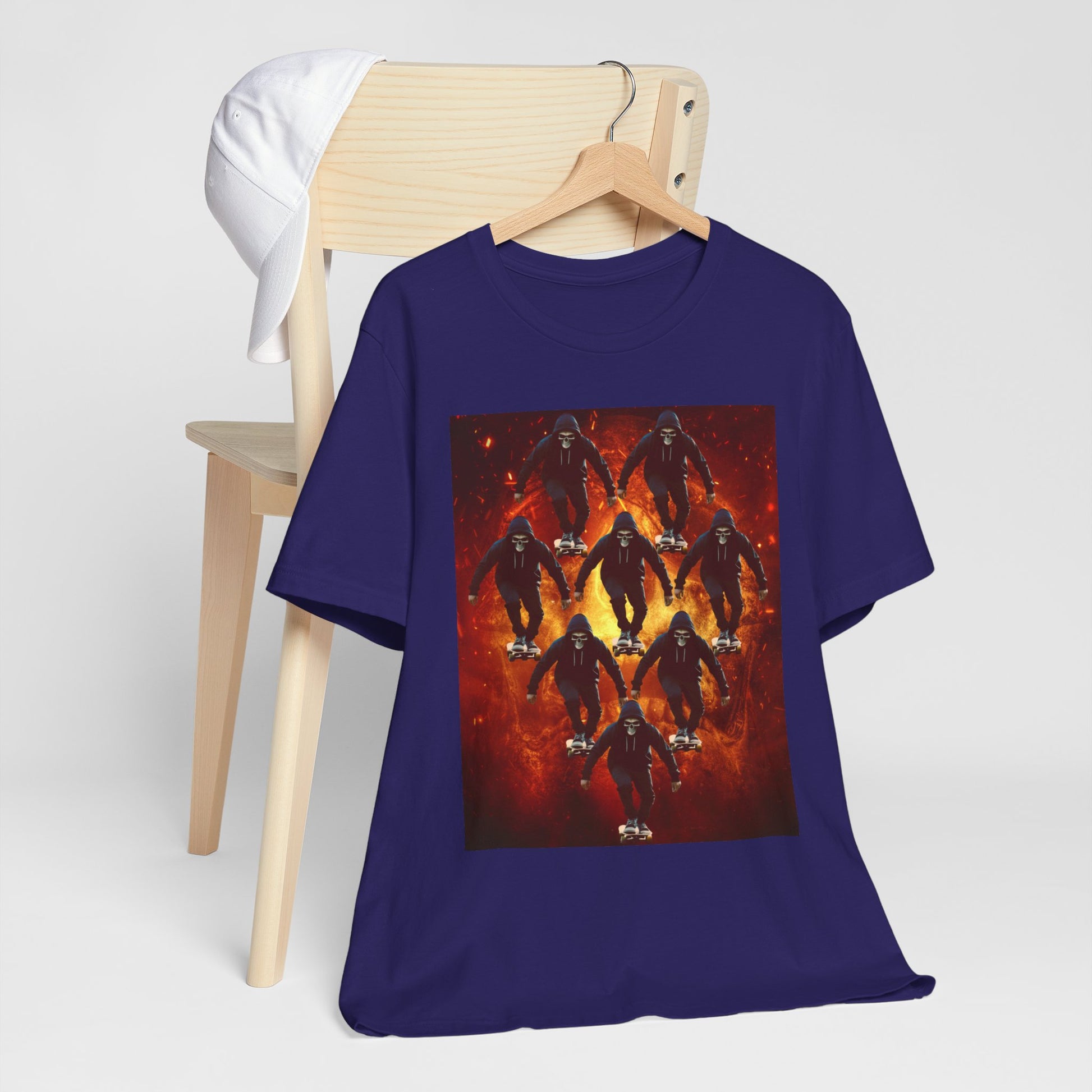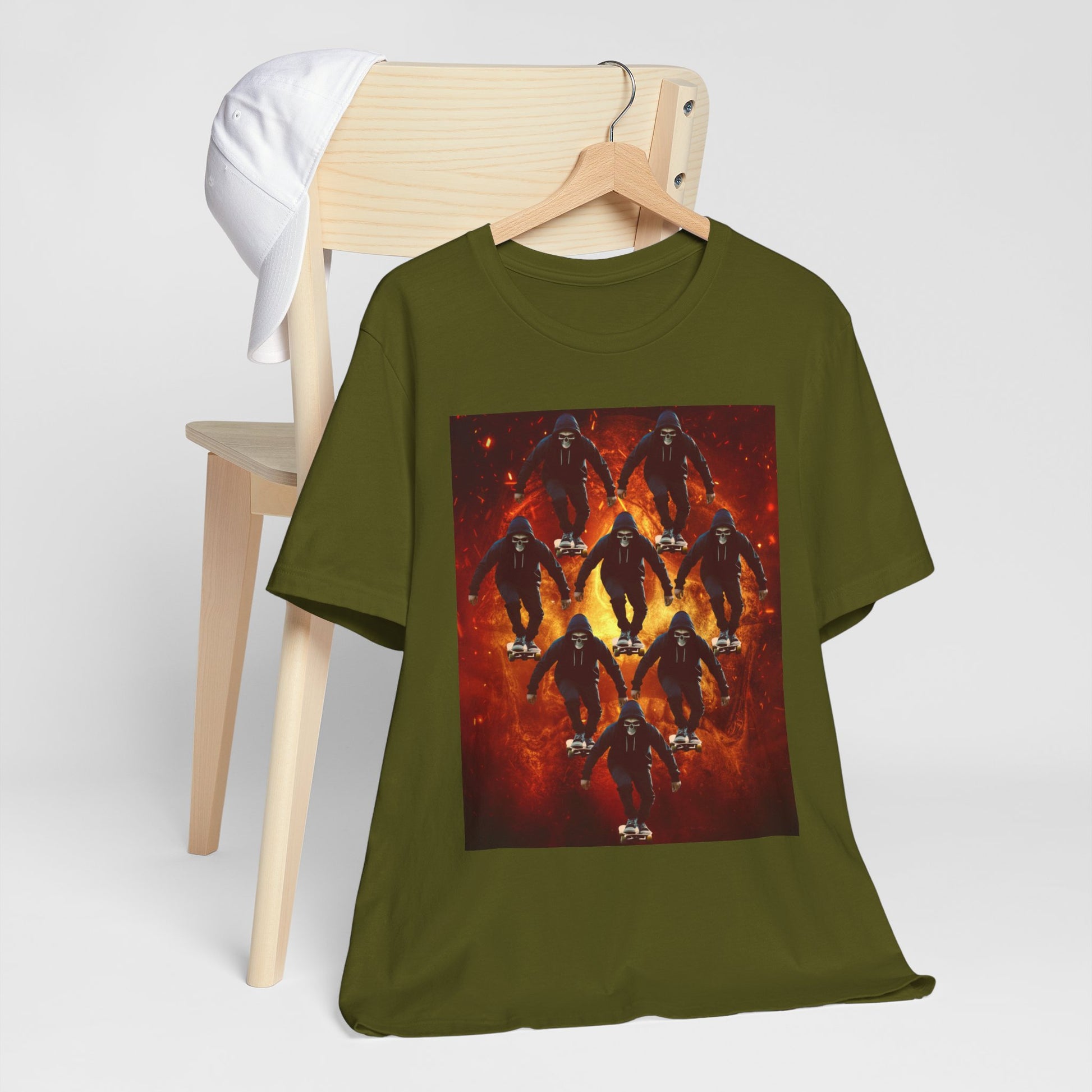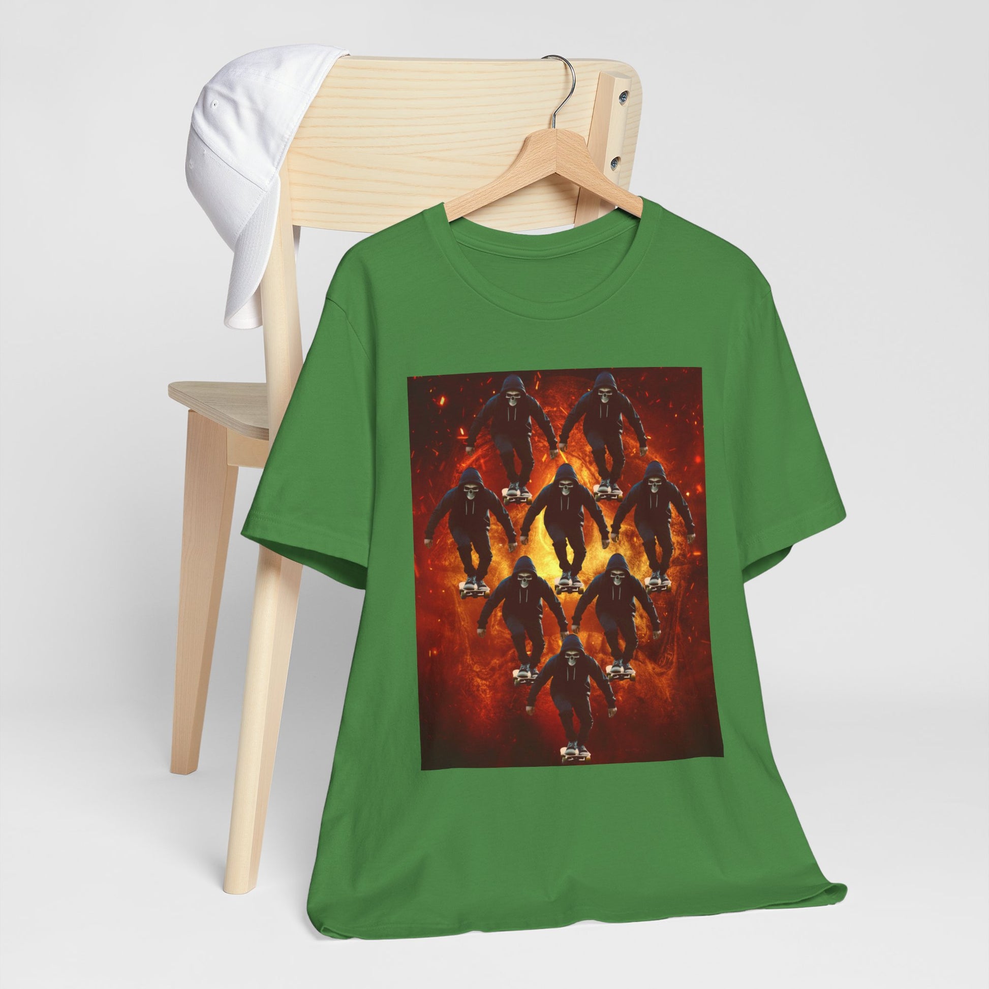 Skull Hoodie Skater T Shirt Urban Streetwear Skateboard Graphic Tee Gothic Horror Skate Style Gift for Dad Teen Boys Halloween Vibe